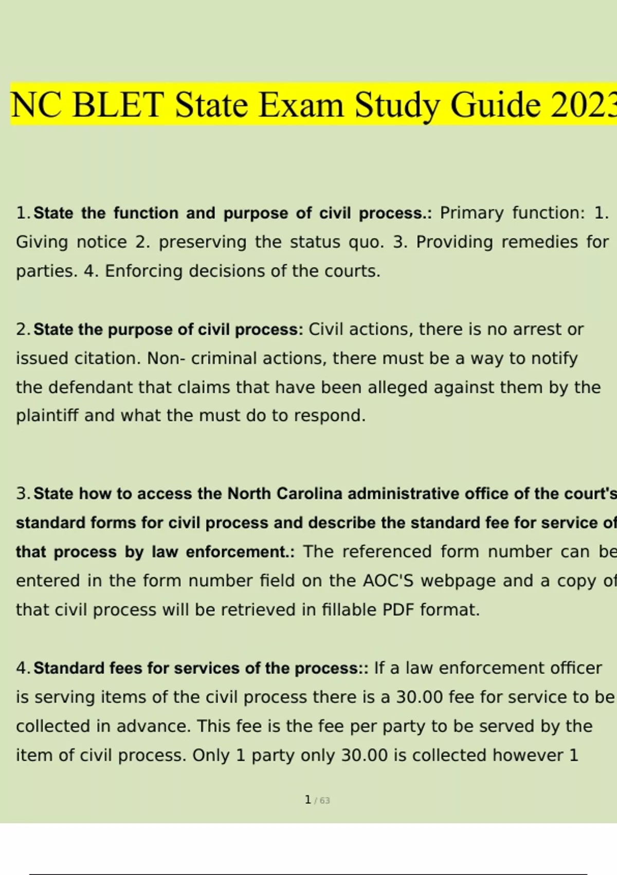 Summary NC BLET State Exam Study Guide [] (Verified by Expert)