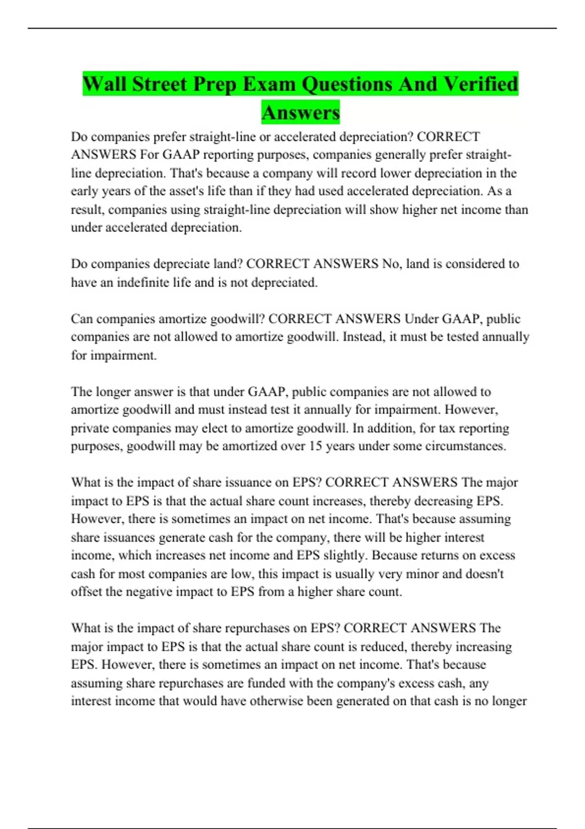 Wall Street Prep Exam Questions And Verified Answers