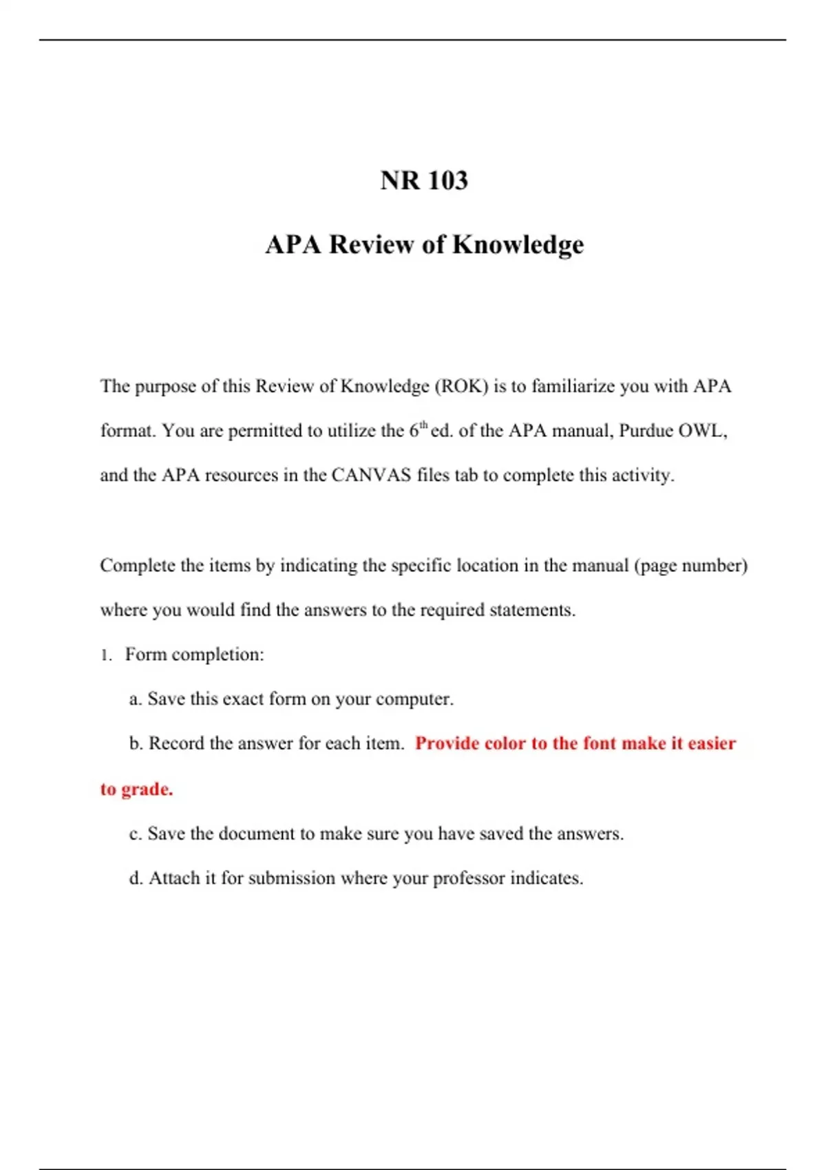 nr 103 APA Review of knowledge, The purpose of this Review of Knowledge (ROK) is to familiarize you with APA format.