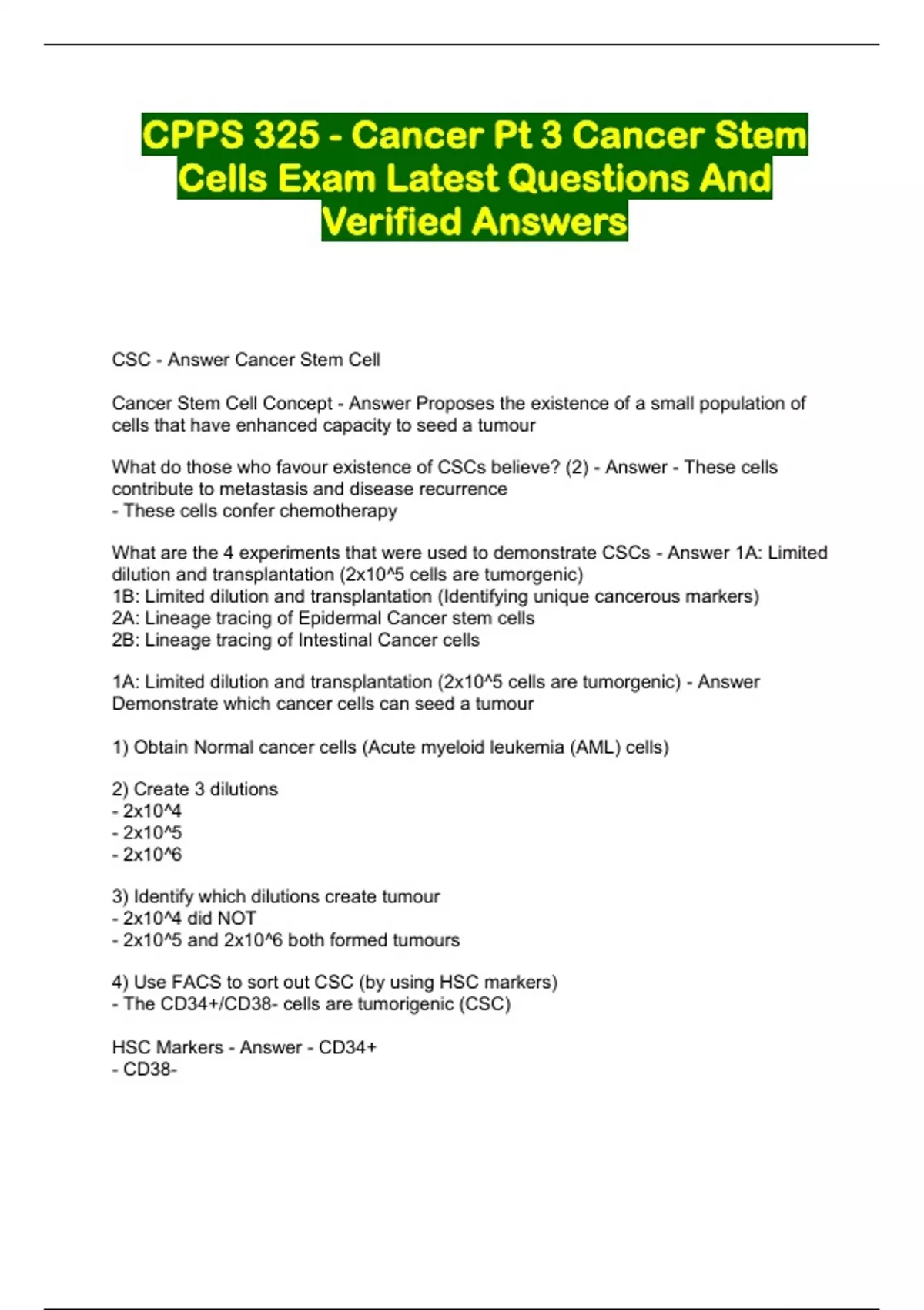 CSC - Answer Cancer Stem Cell
