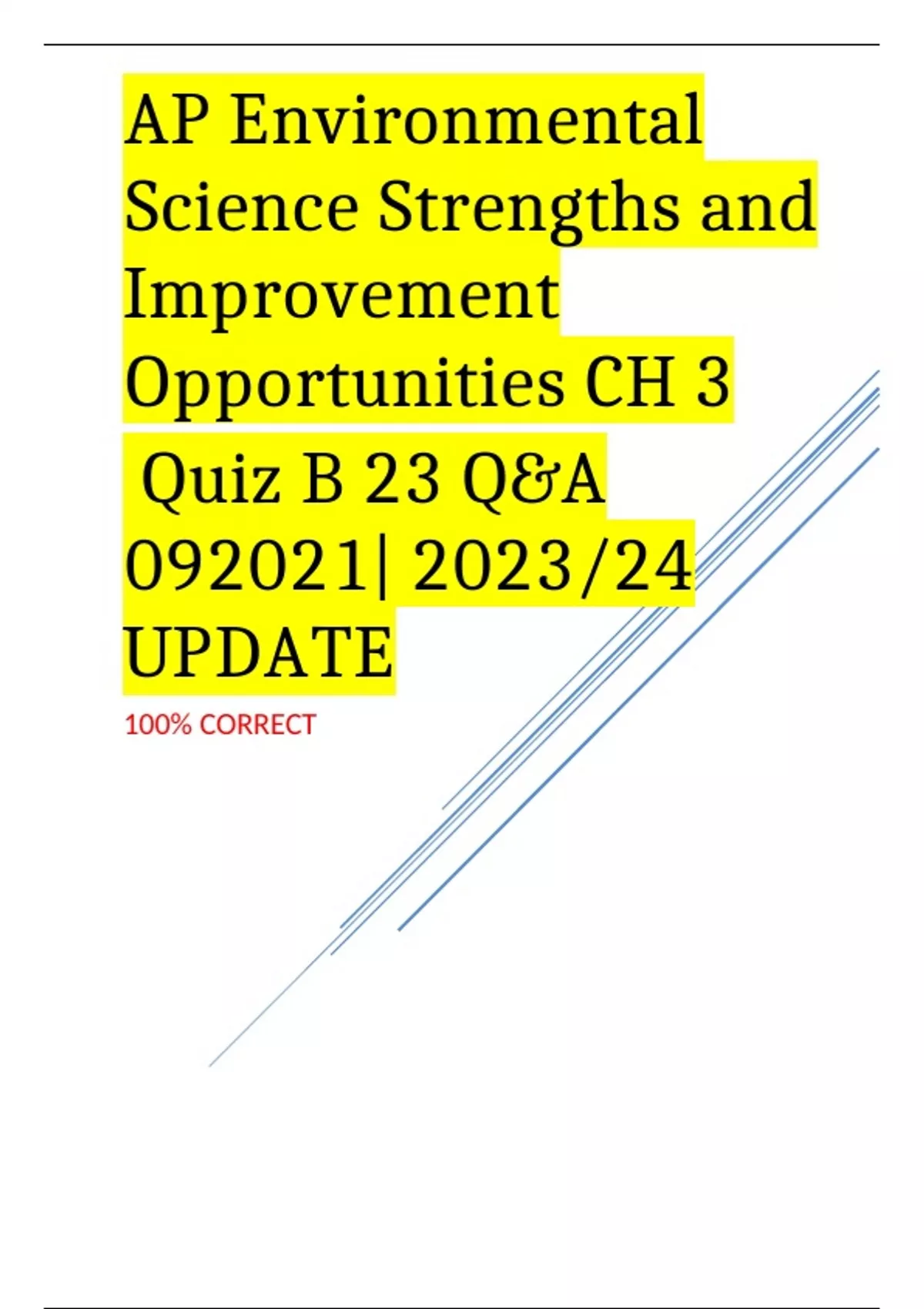 AP Environmental Science Strengths and Improvement Opportunities CH 3 Quiz B 23 Q&A 092021| 2023/24 UPDATE