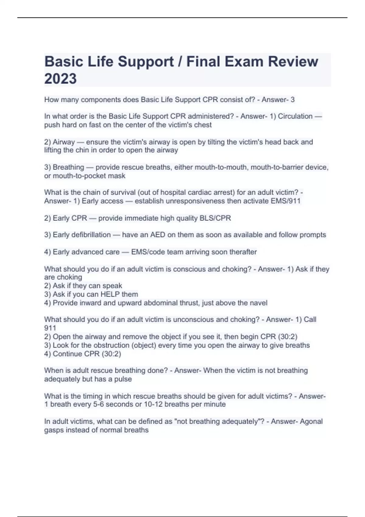 Basic Life Support / Final Exam Review 2023