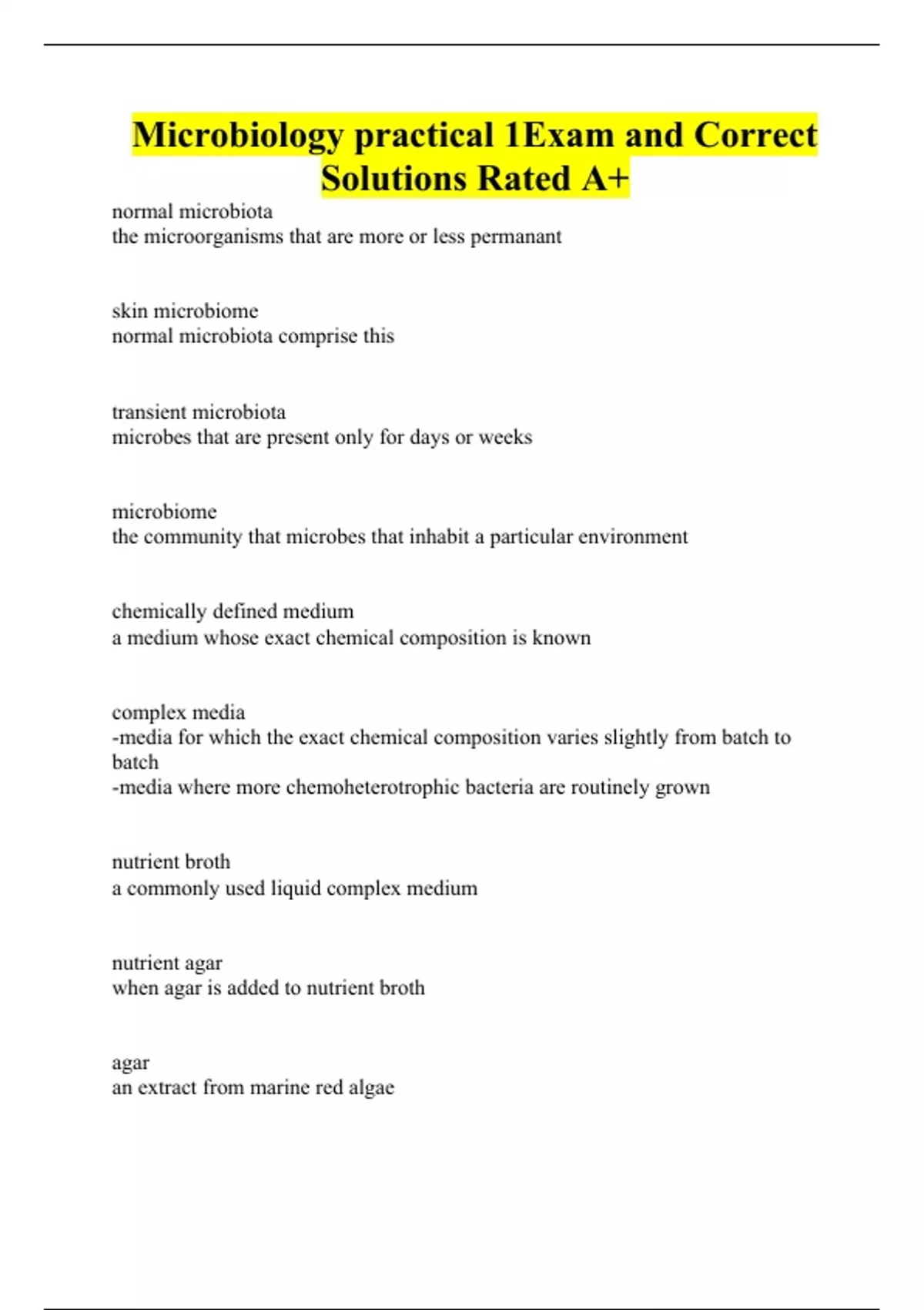 Microbiology practical 1Exam and Correct Solutions Rated A+