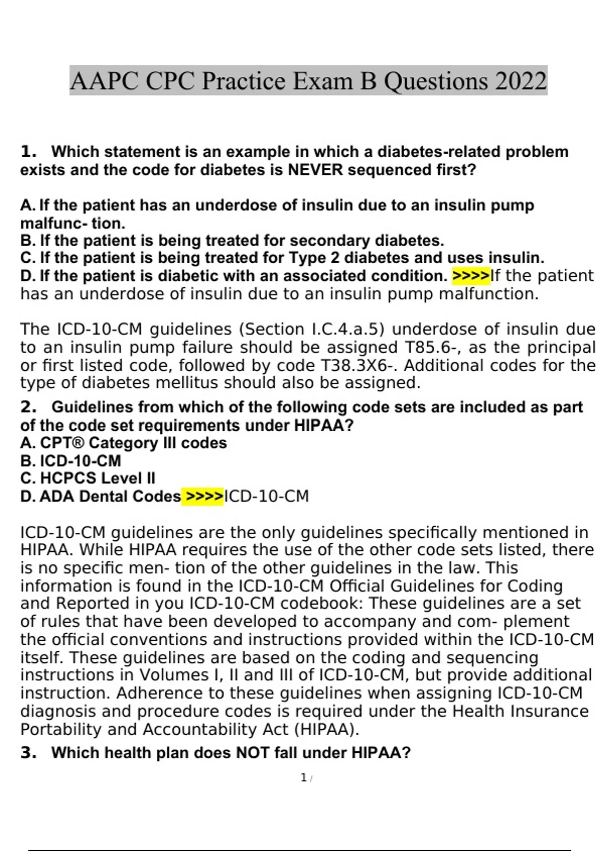 AAPC CPC Practice Exam B Questions and Answers