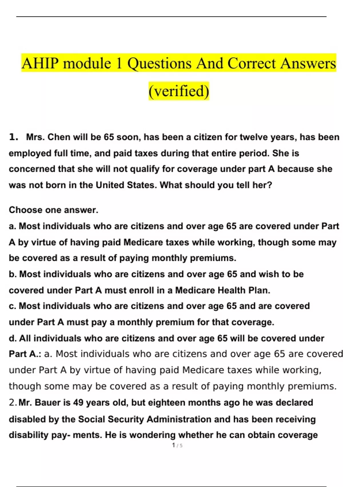 AHIP Module 1 Questions and Answers 2022/2023 verifed