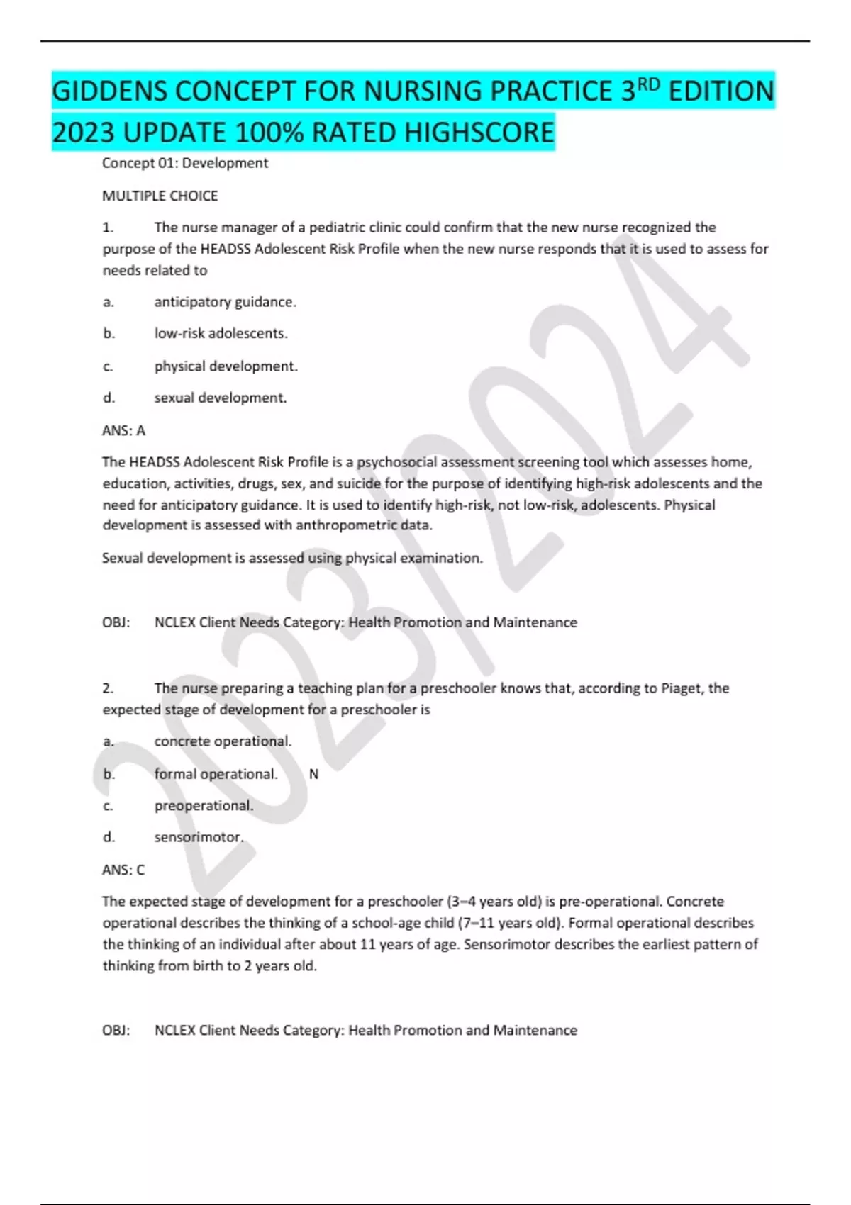 GIDDENS CONCEPT FOR NURSING PRACTICE 3RD EDITION 2023 UPDATE 100% RATED HIGHSCORE