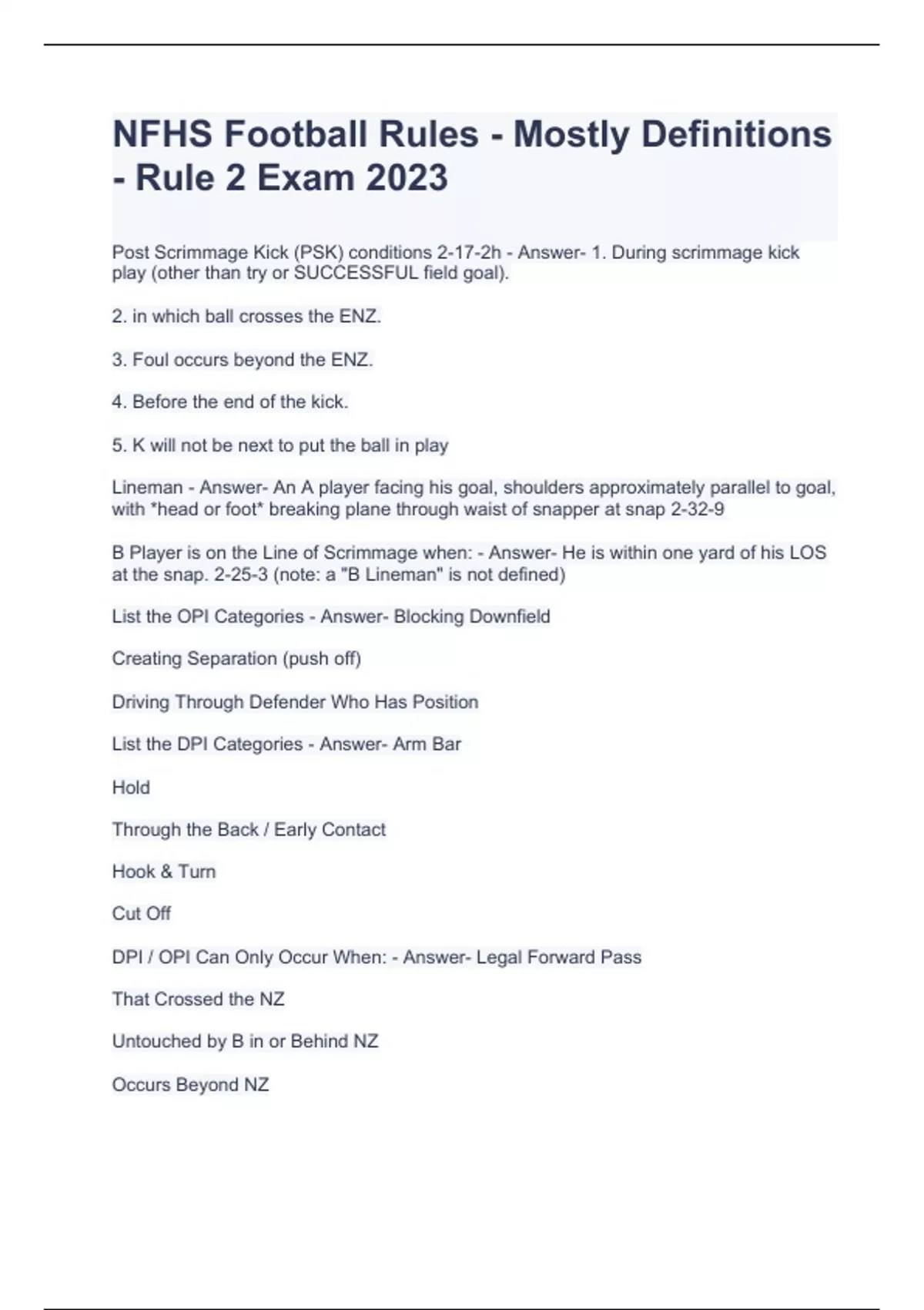 NFHS Football Rules - Mostly Definitions - Rule 2 Exam 2023