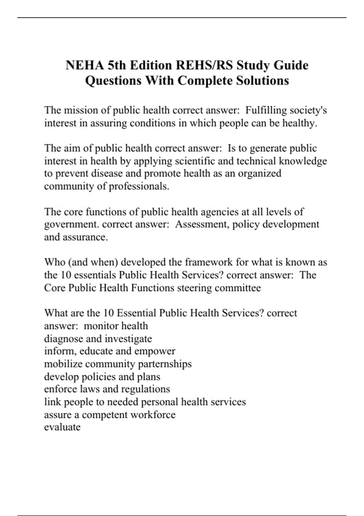 NEHA 5th Edition REHS/RS Study Guide Questions With Complete Solutions