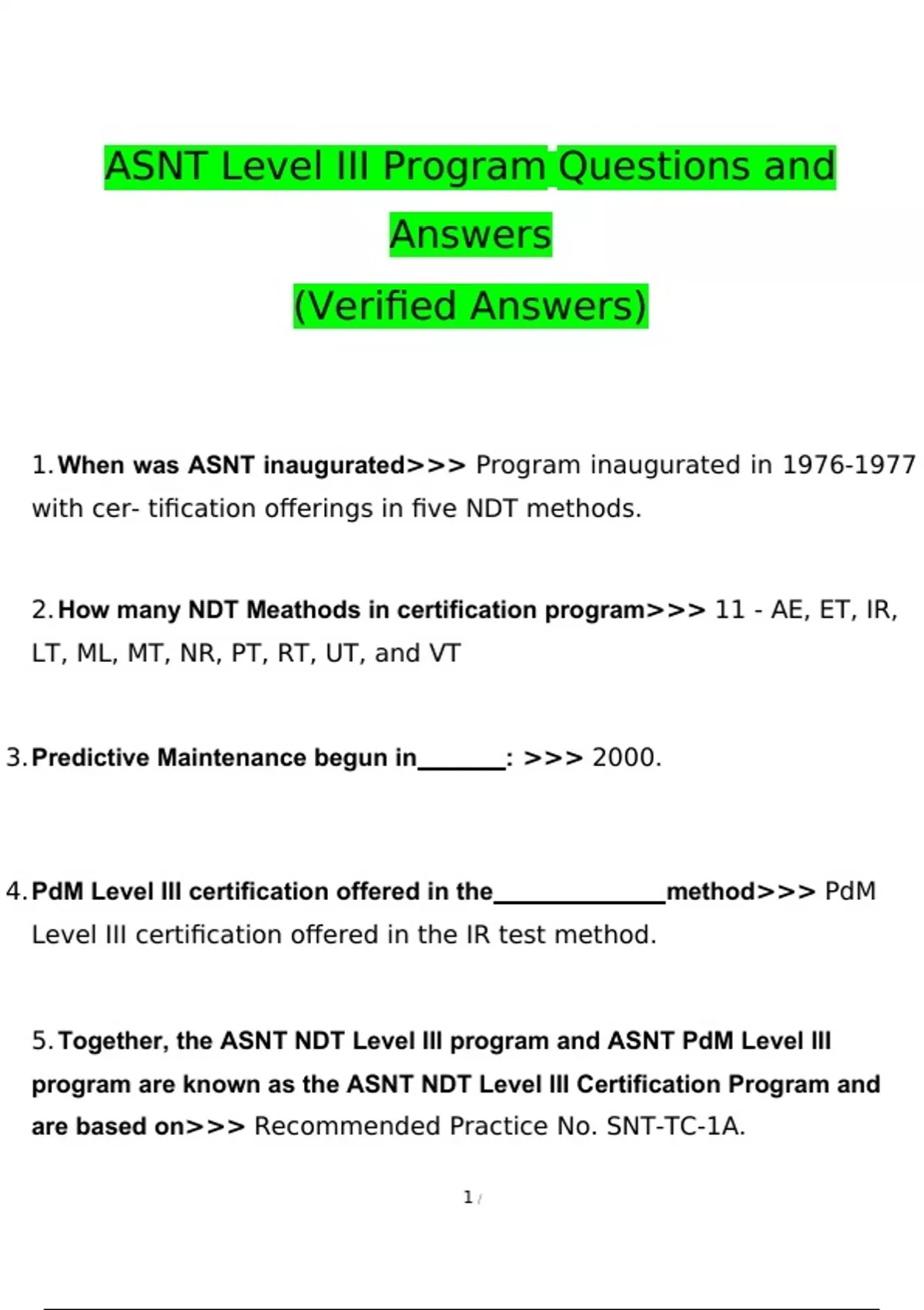 ASNT Level III Program Questions and Answers (Verified Answers)