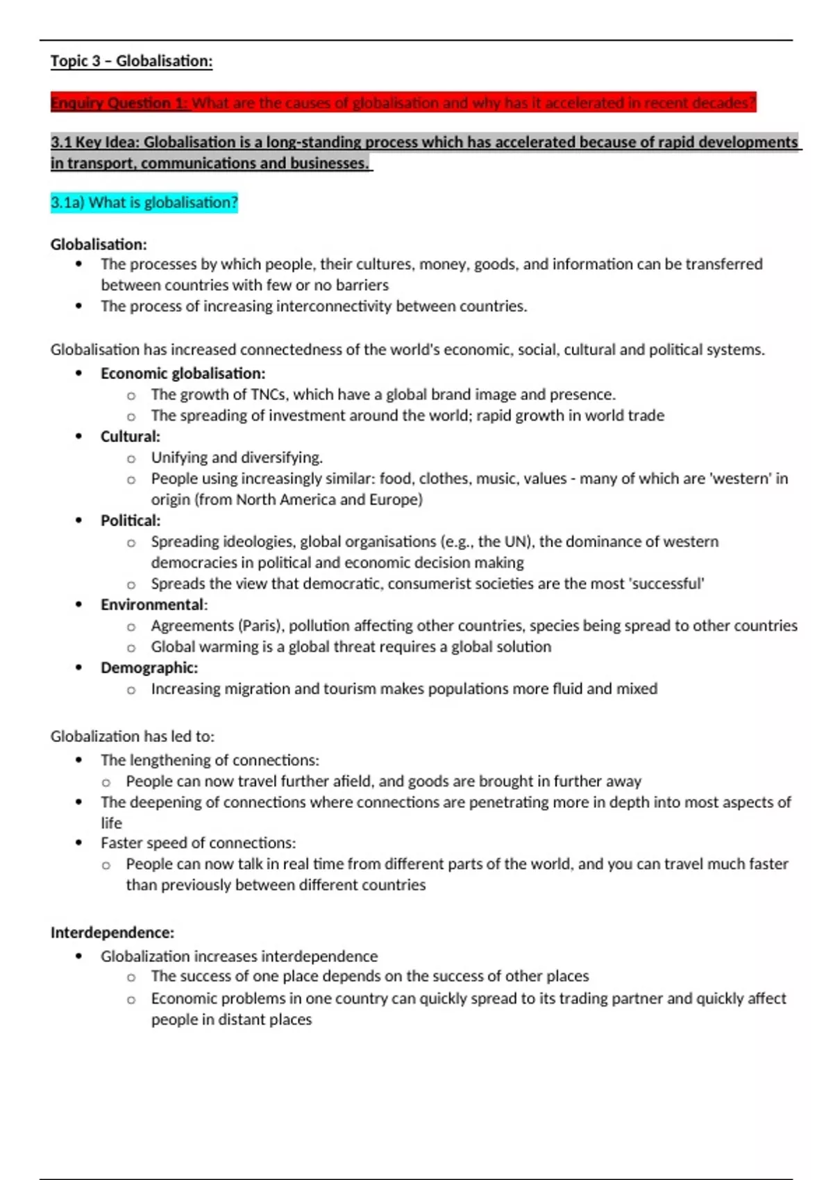 Topic 3 – Globalisation: