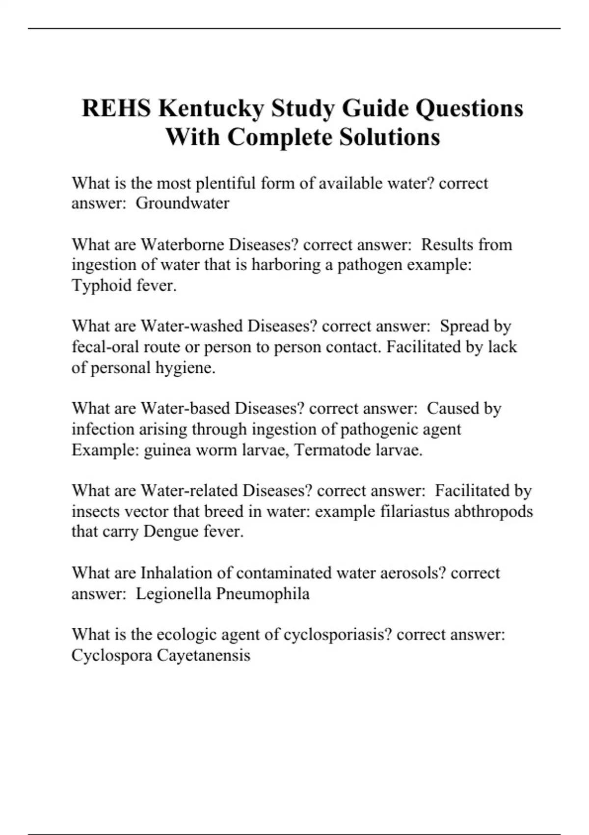 REHS Kentucky Study Guide Questions With Complete Solutions