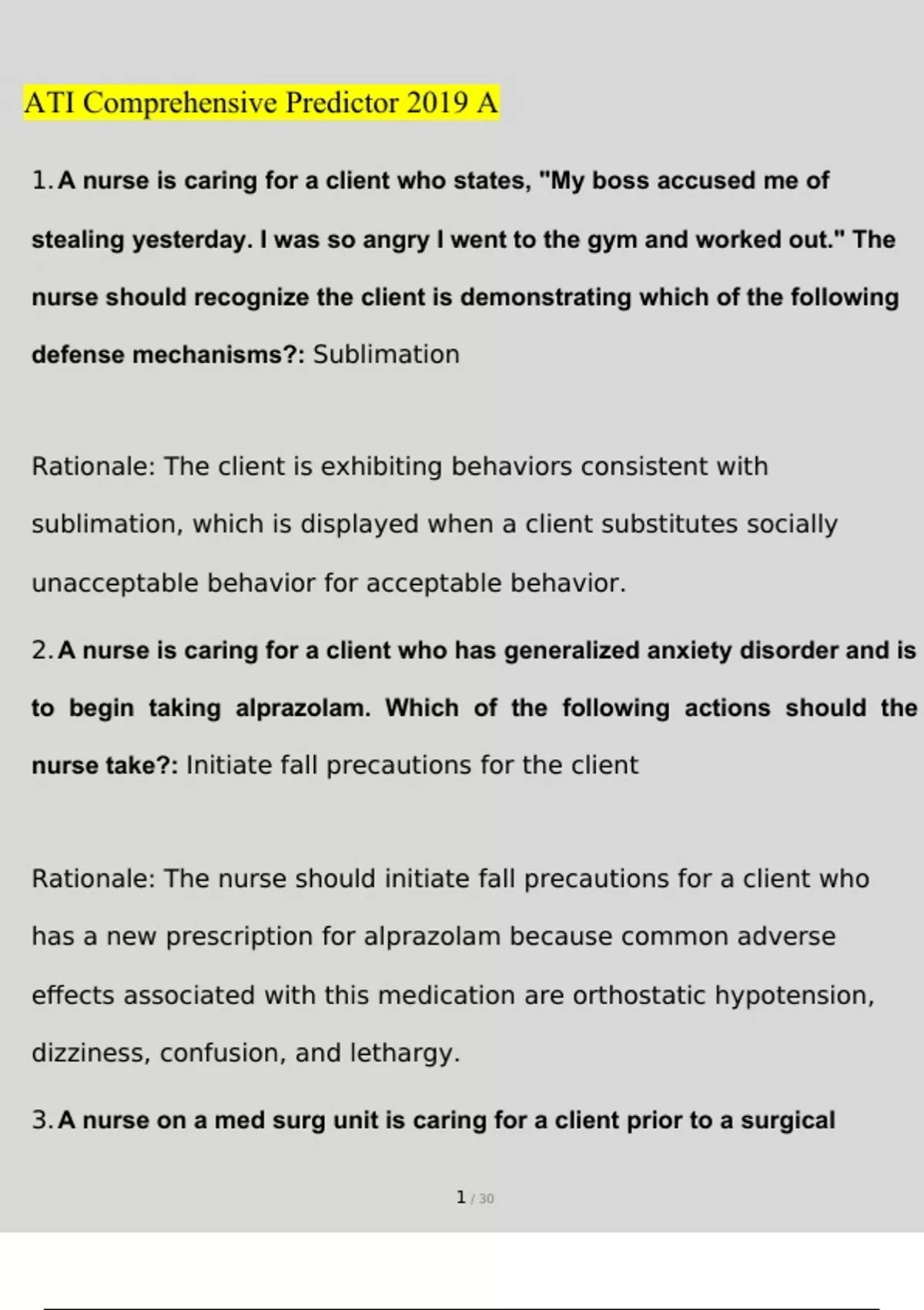 ATI RN Comprehensive Predictor 2019 Practice A Questions and Answers 2023 (Verified Answers)