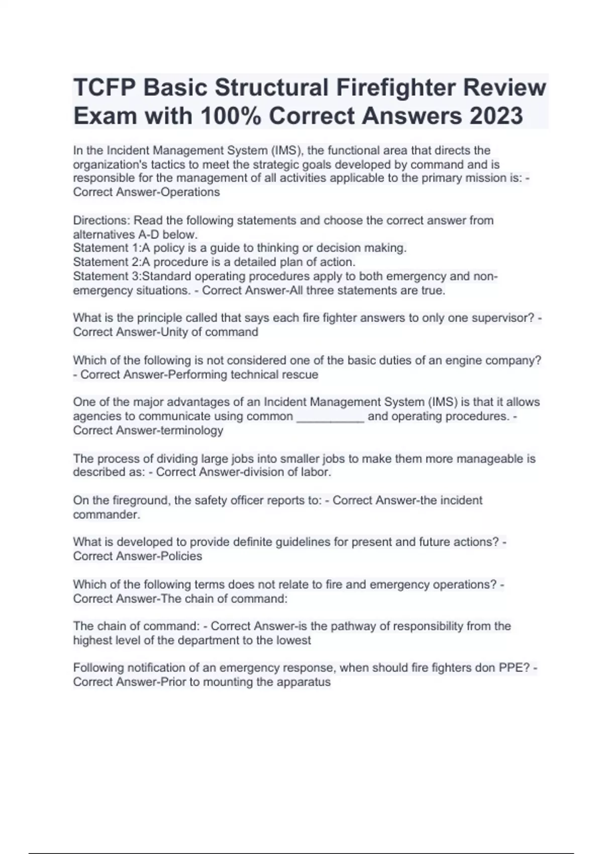 TCFP Basic Structural Firefighter Review Exam with 100% Correct Answers 2023.