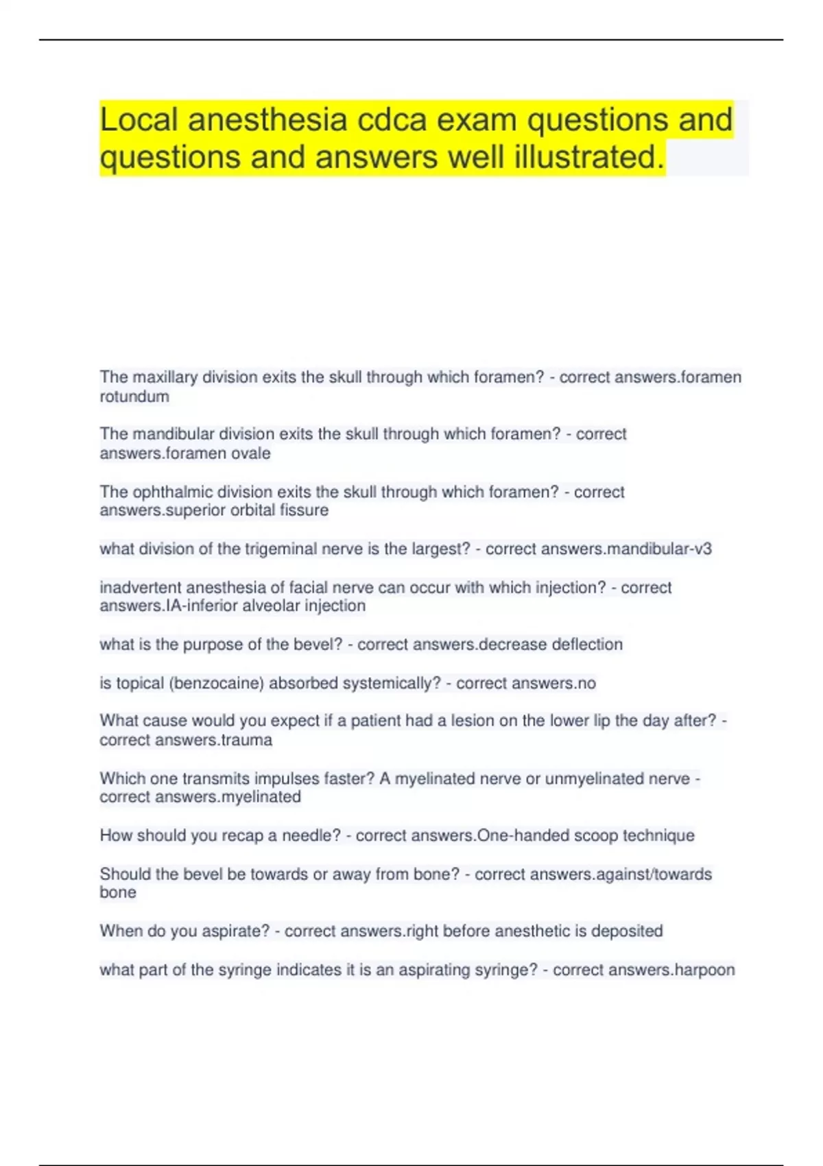 Local anesthesia cdca exam questions and questions and answers well illustrated.