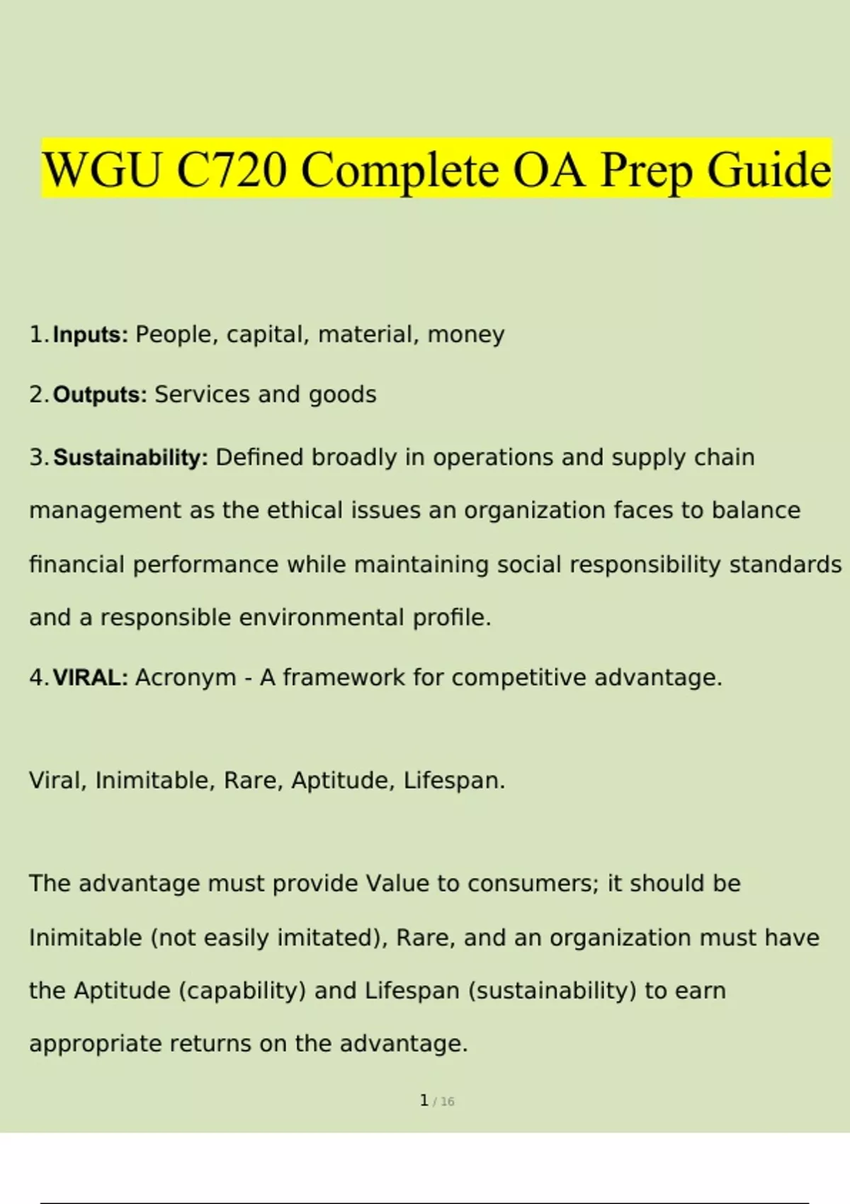 WGU C720 Operations and Supply Chain Management EXAM STUDY BUNDLE 2023 - 2024 (COMPLETE PACKAGE)(Verified)