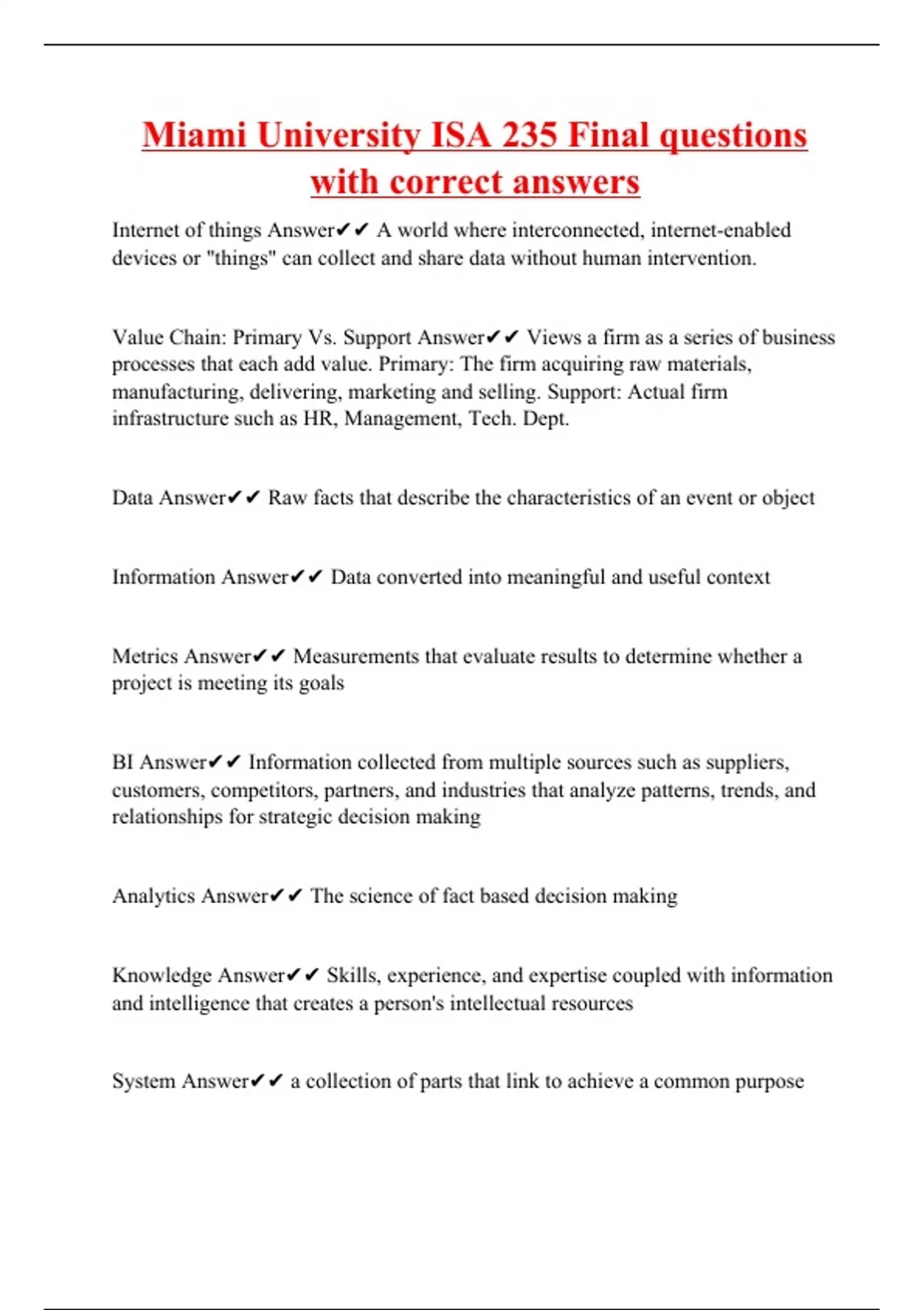 miami university isa 235 final questions with corr