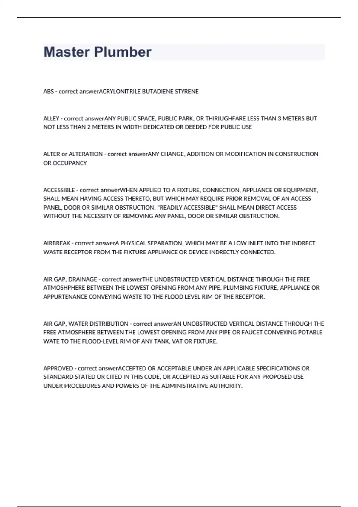Master Plumber Exam 2023 with 100% correct answers