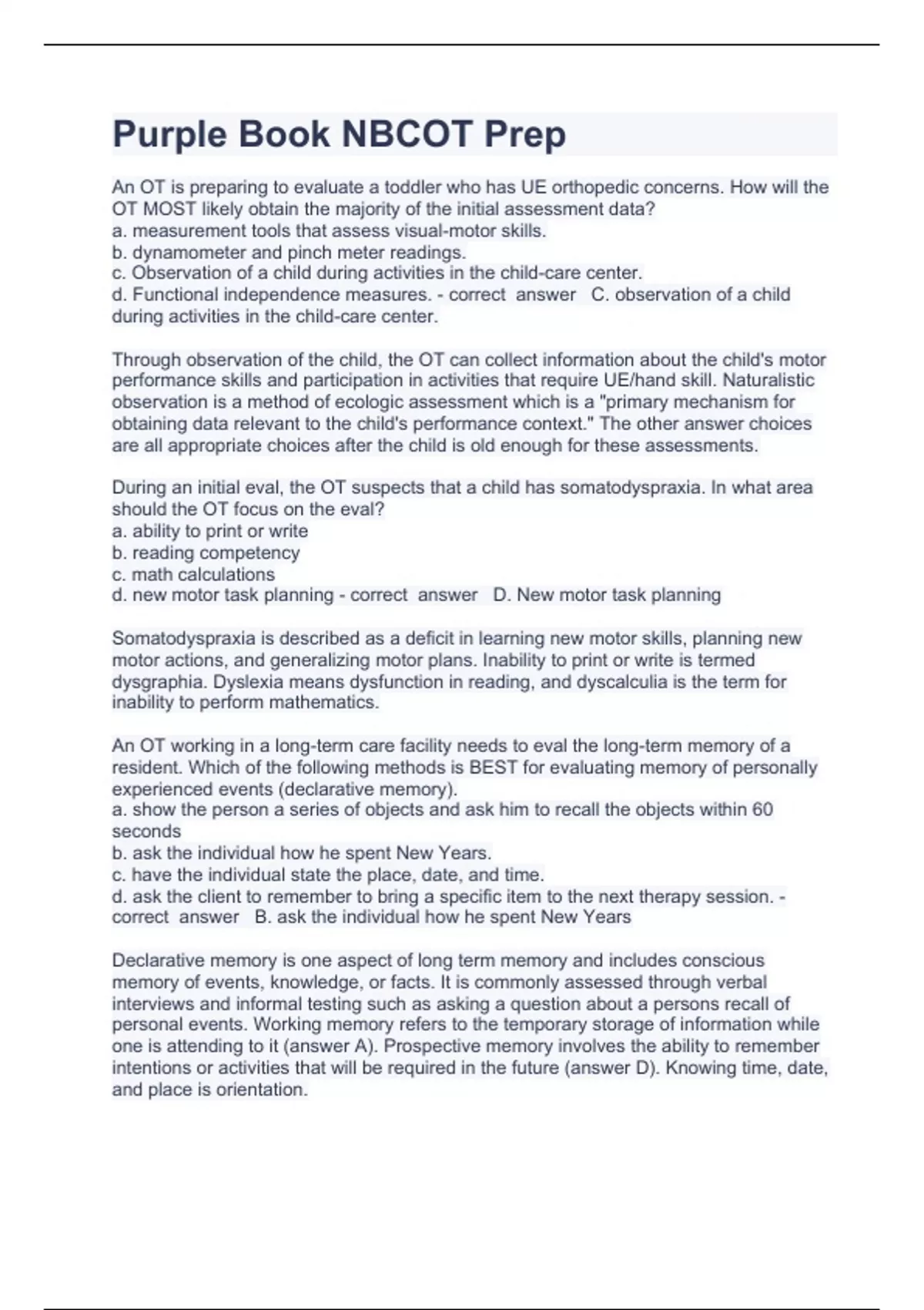 purple book nbcot prep question and answers correc