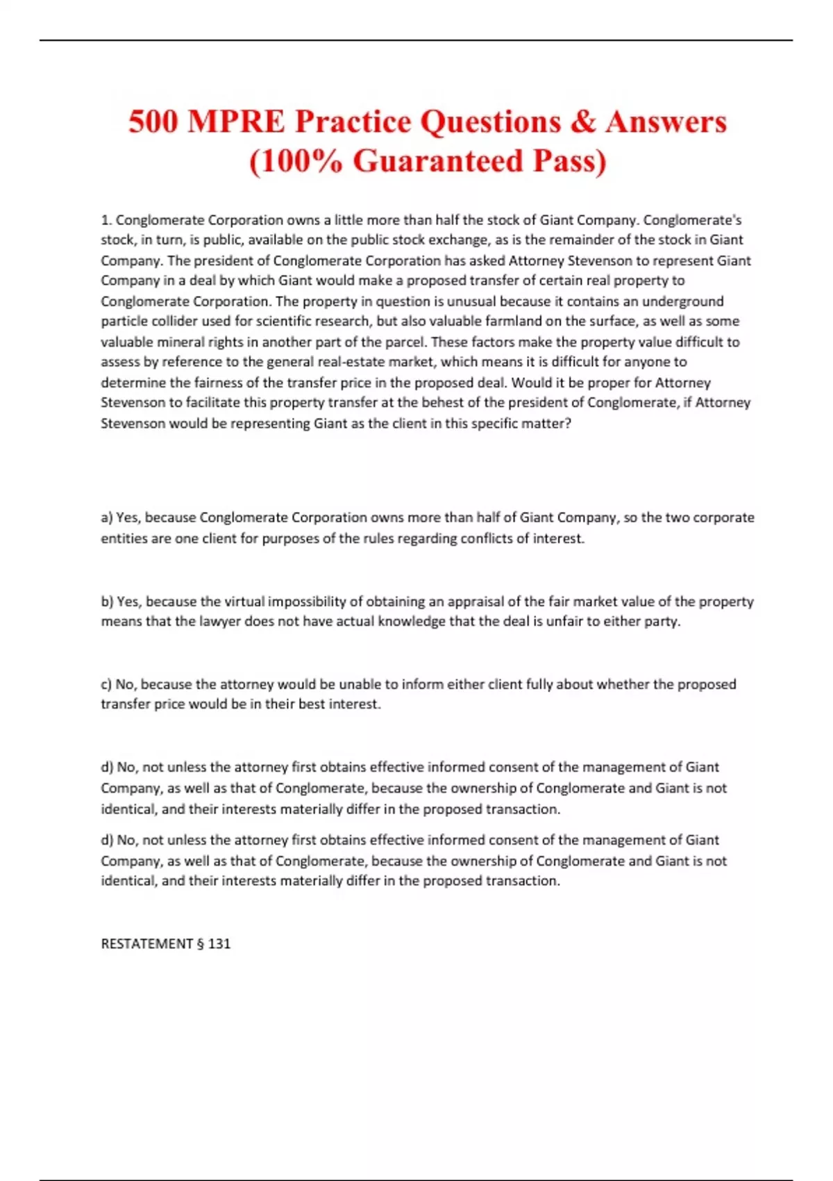 500 MPRE Practice Questions & Answers (100% Guaranteed Pass).