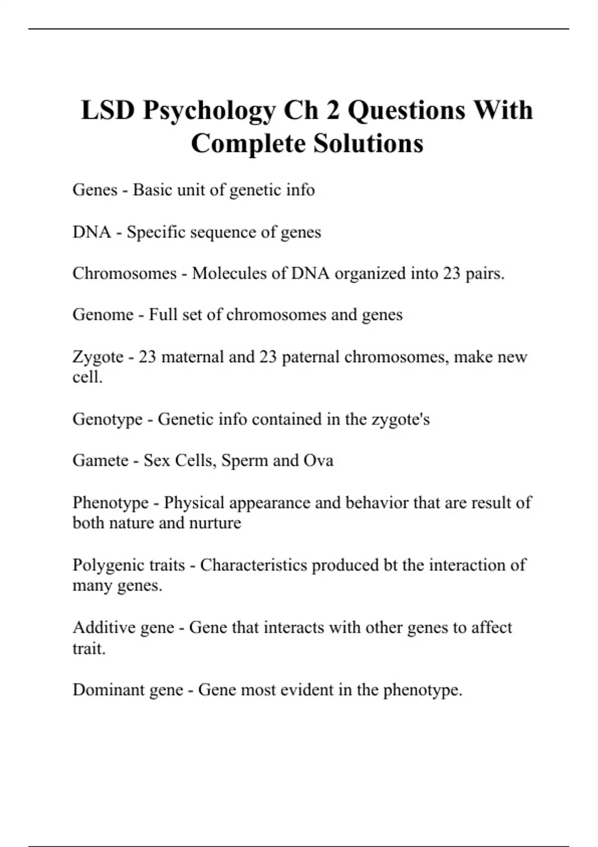 LSD Psychology Ch 2 Questions With Complete Solutions