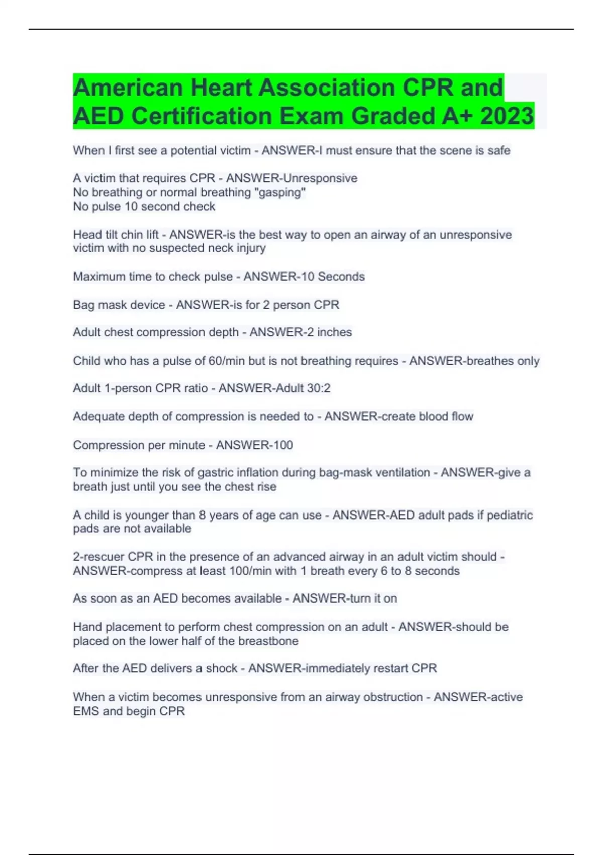American Heart Association CPR and AED Certification Exam Graded A+ 2023