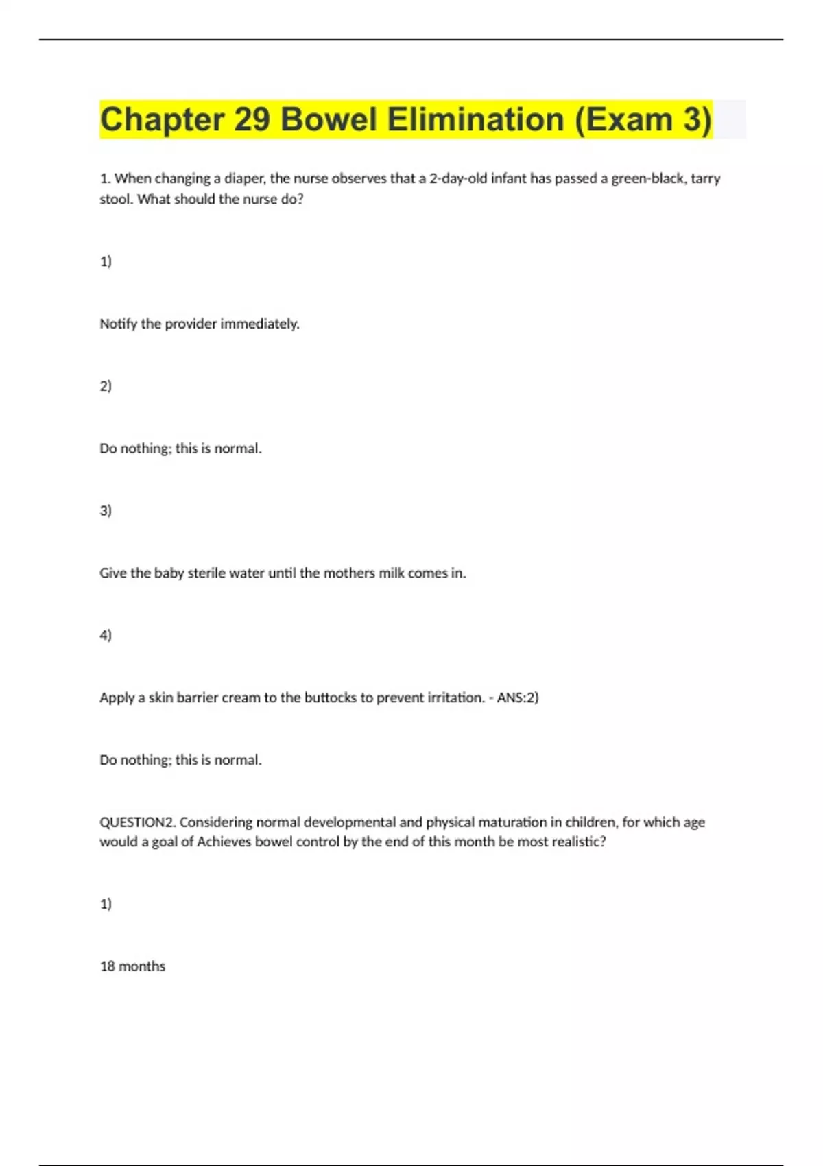Exam of 33 pages for the course CNA - Certified Nursing Assistant at CNA - Certified Nursing Assistant (Chapter 29 Bowel E)