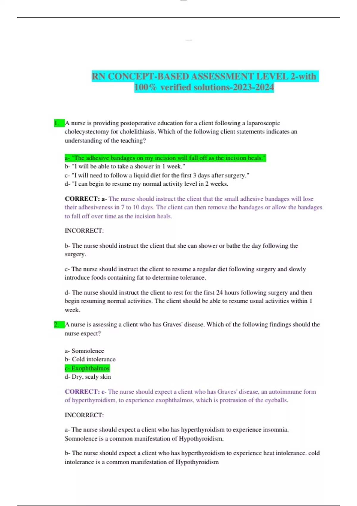 RN CONCEPT-BASED ASSESSMENT LEVEL 2-with 100% verified solutions-