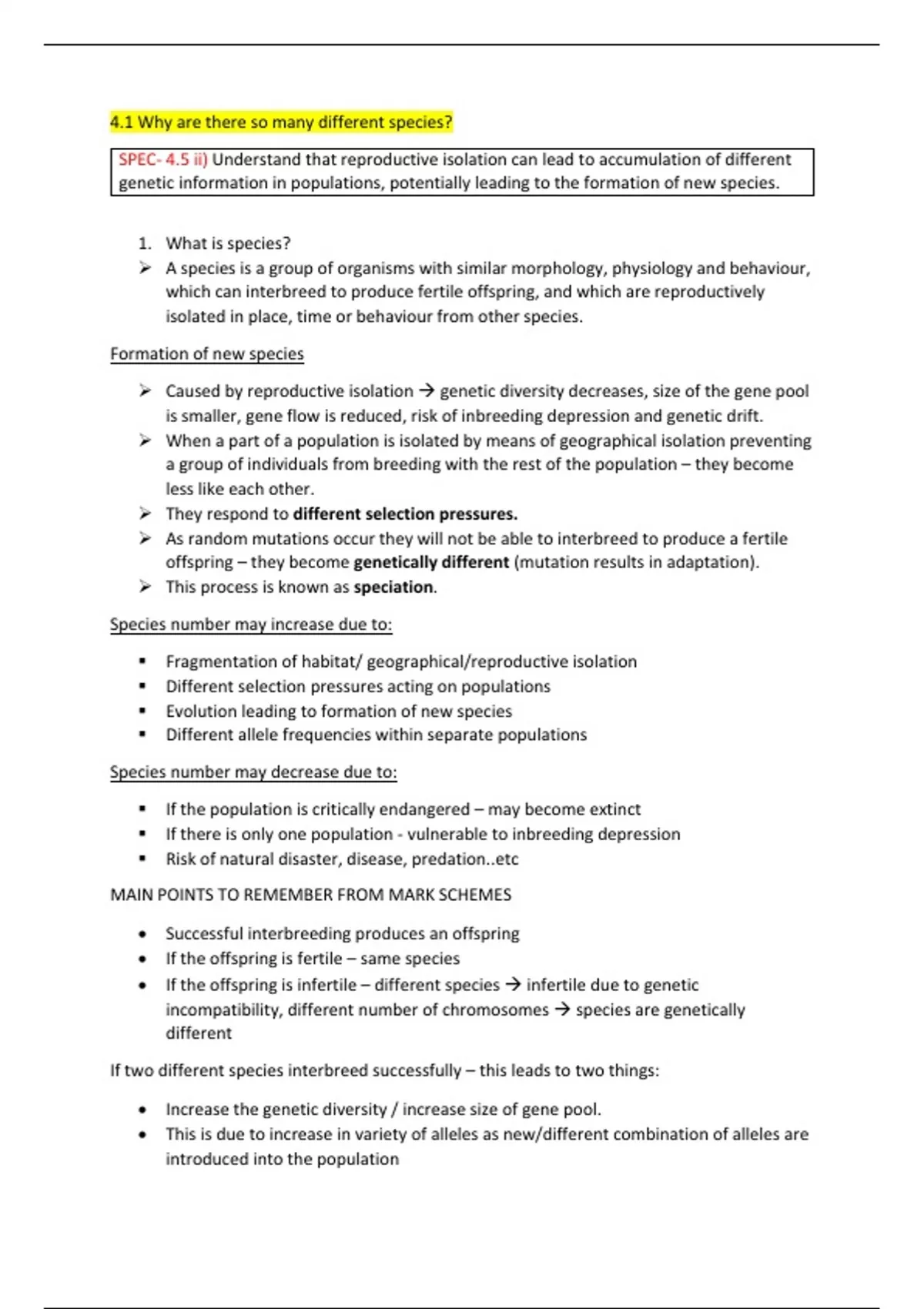SPEC- 4.5 ii) Understand that reproductive isolation can lead to accumulation of different