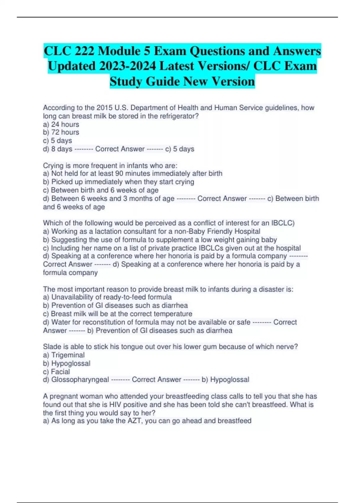 CLC 222 Module 5 Exam Questions and Answers Updated Latest Versions/ CLC Exam Study Guide New Version