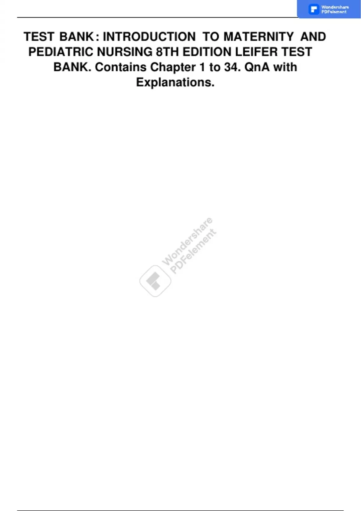 Test Bank - Introduction to Maternity and Pediatric Nursing 8e (by Leifer) 2