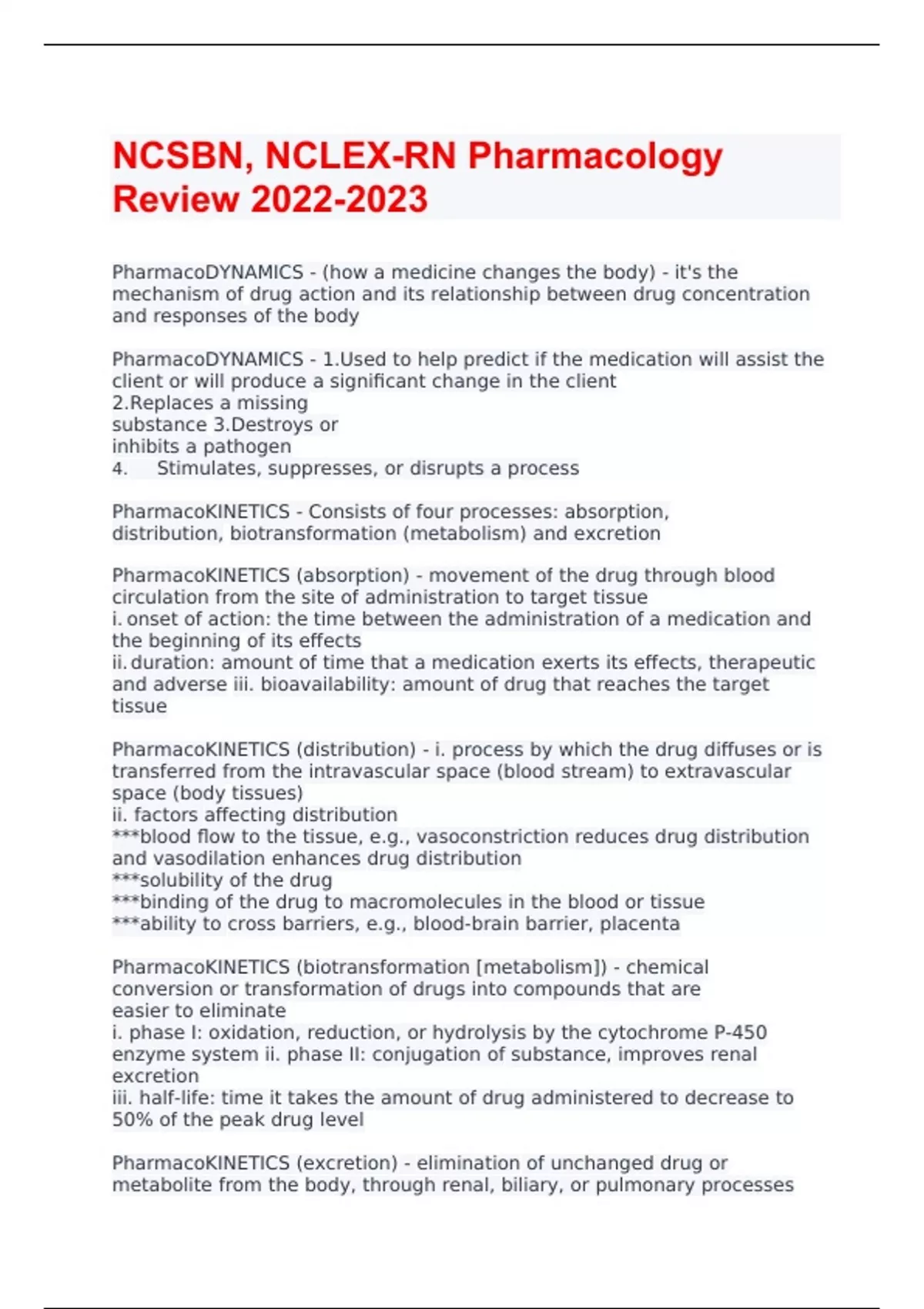ncsbn nclex rn pharmacology review 2022 2023docx