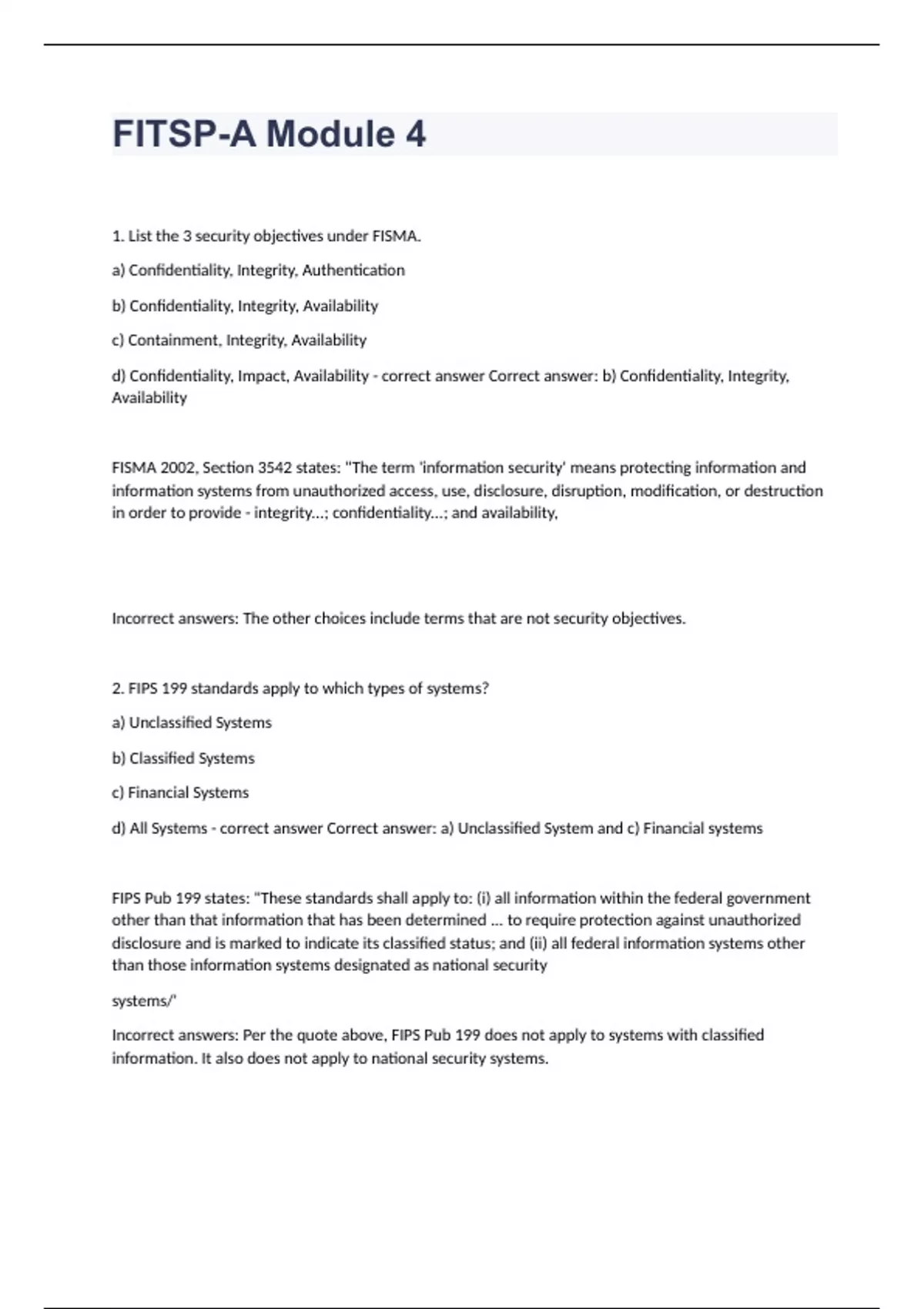 FITSP-A Module 4 questions with 100% correct answers 2023