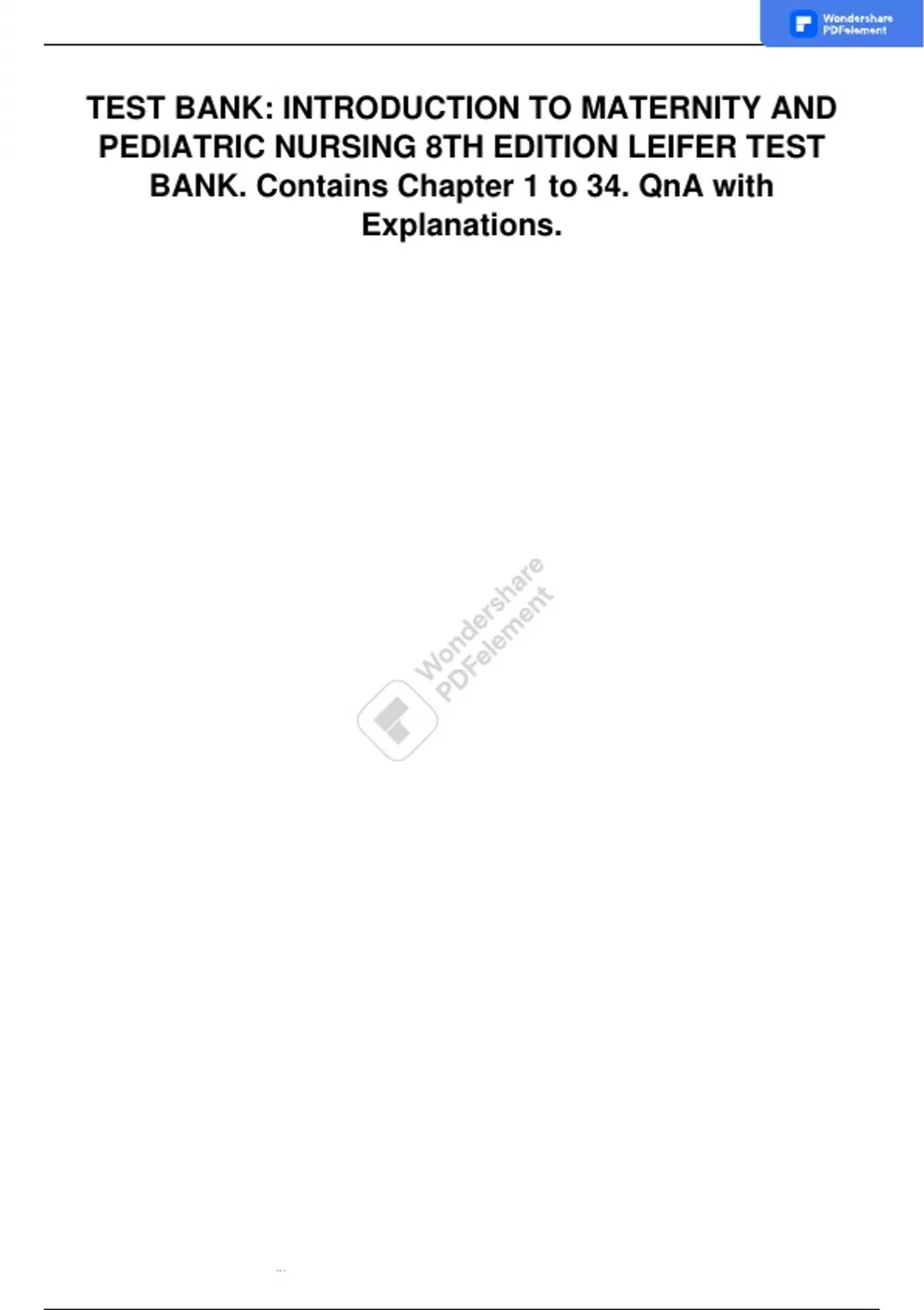 Test Bank - Introduction to Maternity and Pediatric Nursing 8e (by Leifer) 2