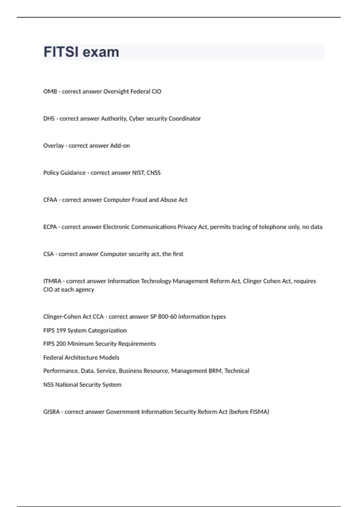 FITSI exam(Question n answers)rated A+ 2023