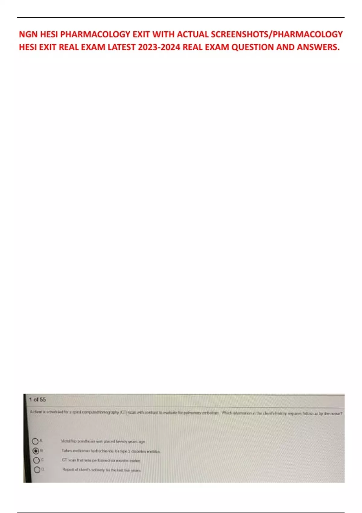 NGN HESI PHARMACOLOGY EXIT WITH ACTUAL SCREENSHOTS/PHARMACOLOGY HESI EXIT REAL EXAM LATEST REAL EXAM QUESTION AND ANSWERS.