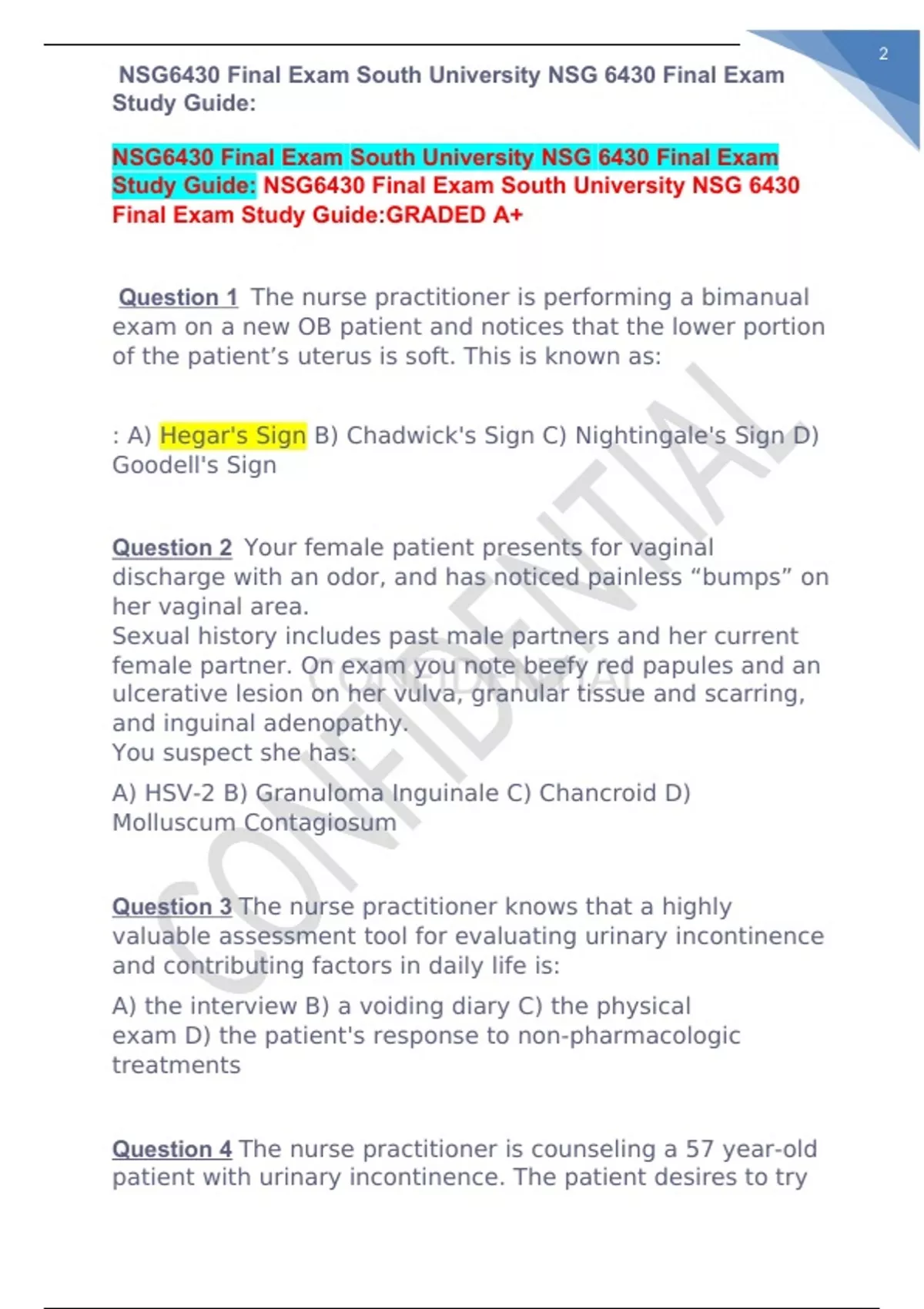 NSG6430 Final Exam South University NSG 6430 Final Exam Study Guide:GRADED A+