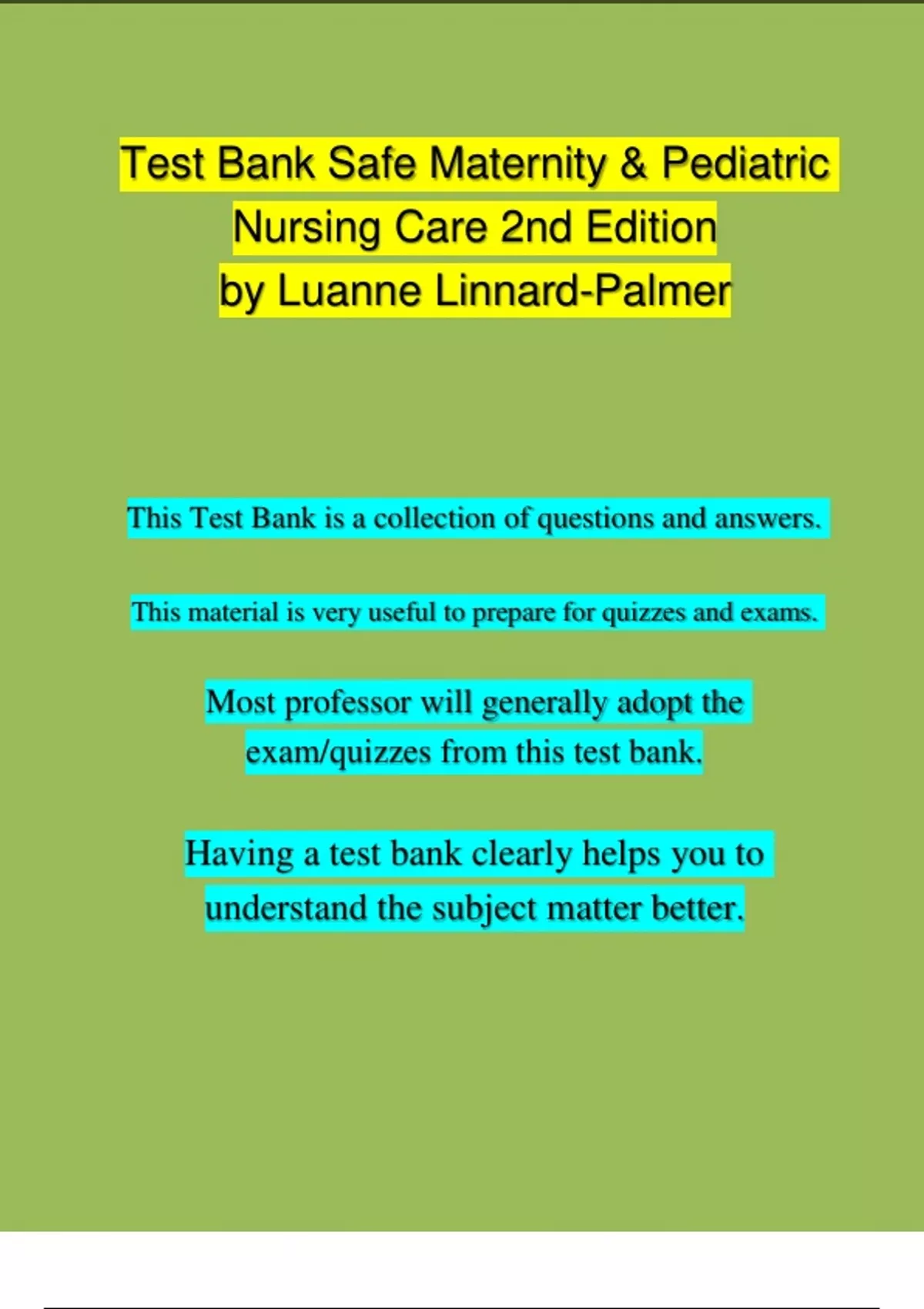 TEST BANK - Safe Maternity & Pediatric Nursing Care Second Edition by Luanne Linnard-Palmer Chapter 1 - 38 | 100 % Complete TEST BANK - Safe Maternity & Pediatric Nursing Care Second Edition by Luanne Linnard-Palmer Chapter 1 - 38 | 100 % Complete