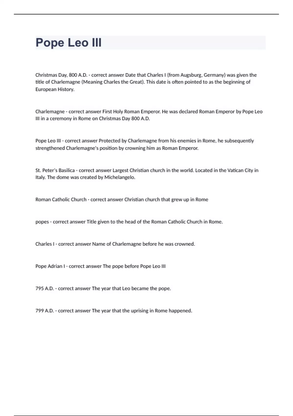 Pope Leo III fully solved graded A+ 2023