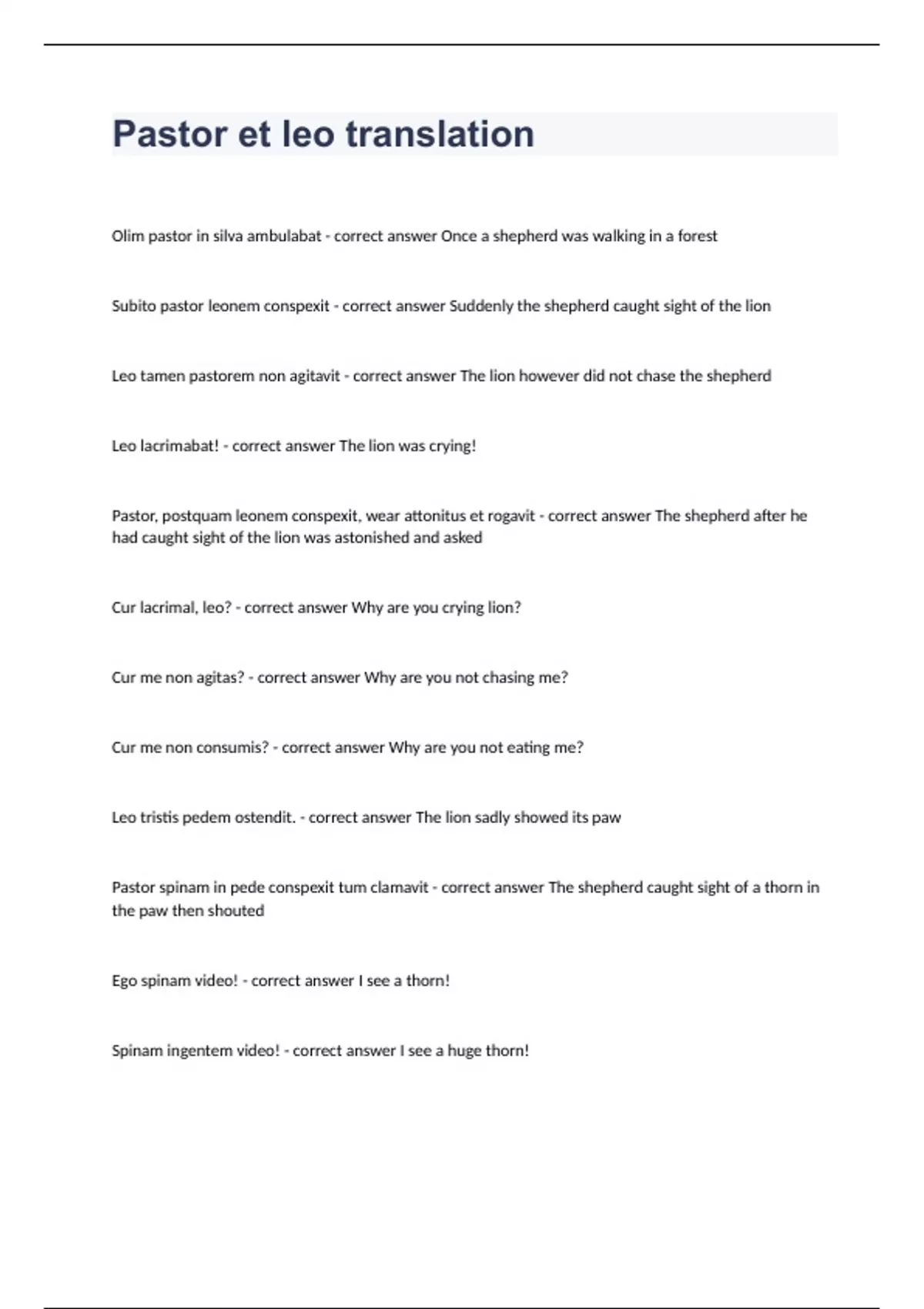 Pastor et leo translation question with verified solution 2023