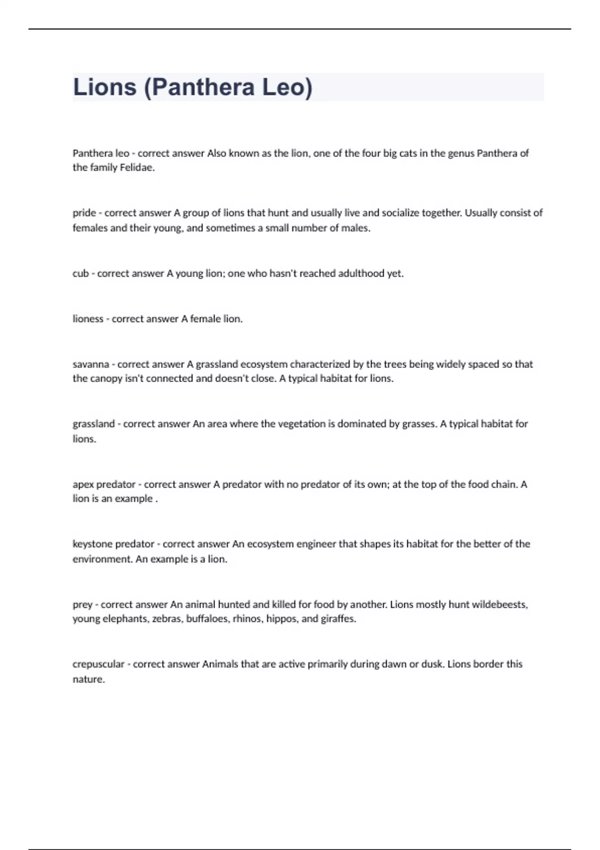 Lions (Panthera Leo)correctly answered rated A+ 2023