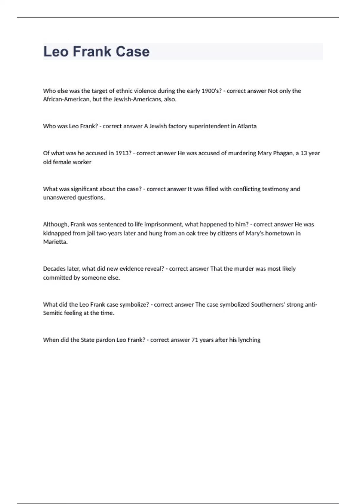 Exam of 1 pages for the course LEO at LEO (Leo Frank Case)