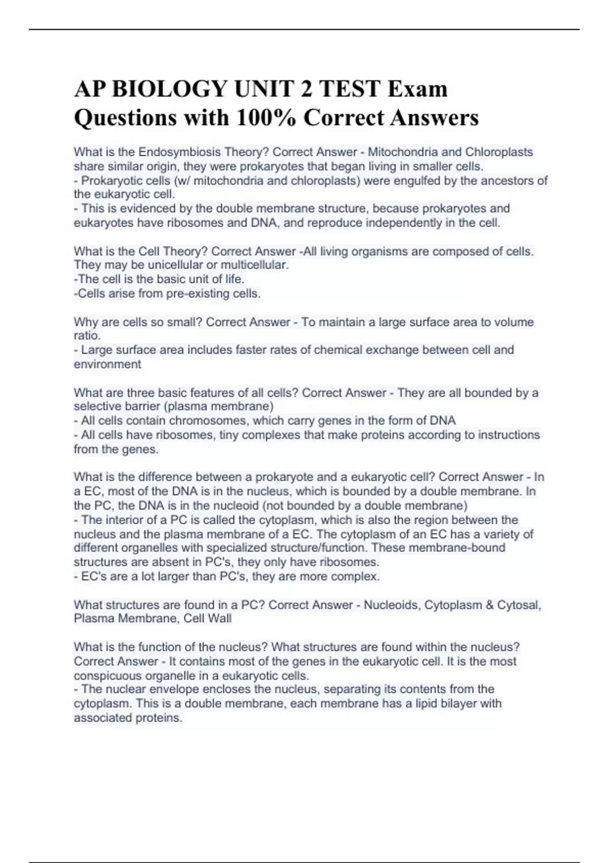 AP BIOLOGY UNIT 2 TEST Exam Questions with 100% Correct Answers