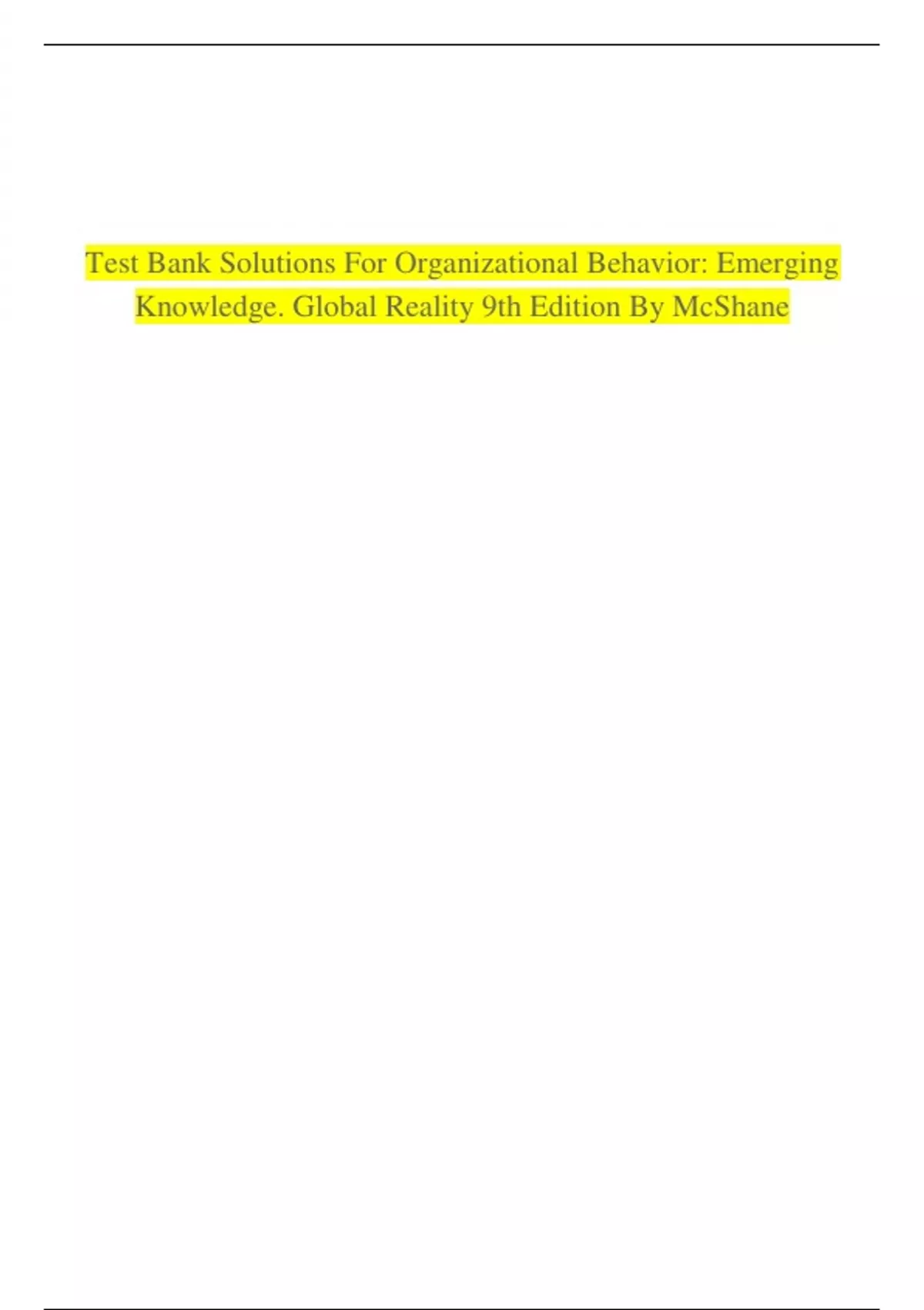 Test Bank Solutions For Organizational Behavior: Emerging Knowledge. Global Reality 9th Edition By McShane