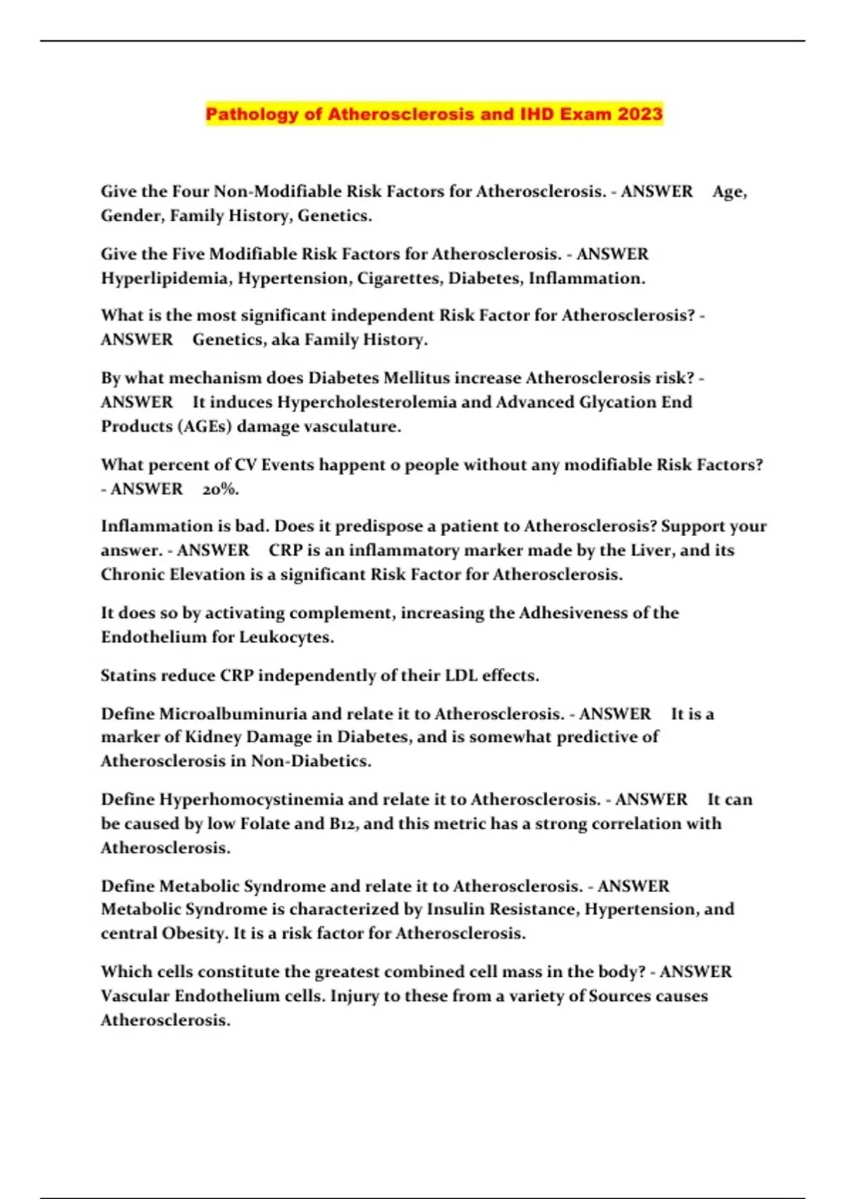 Pathology of Atherosclerosis and IHD Exam 2023...