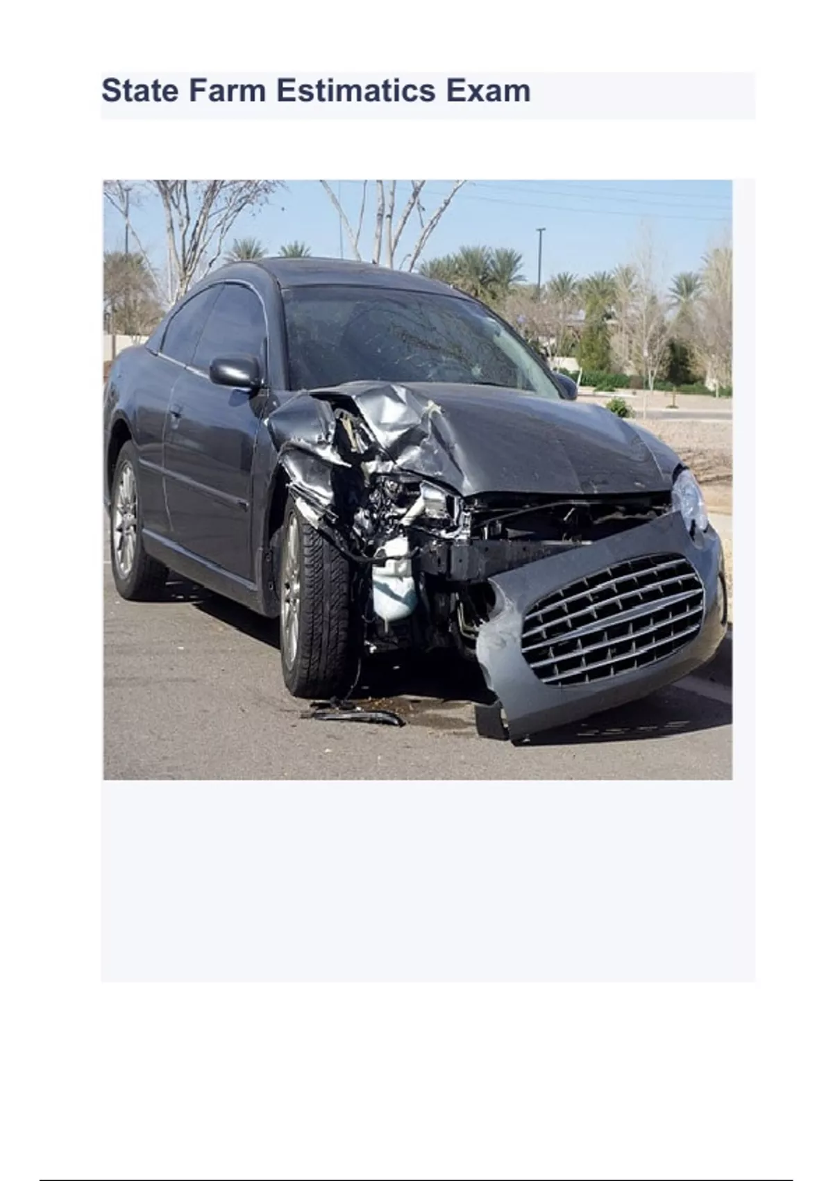 State Farm Estimatics Exam With 100% Correct Answers SOLVED!! ACTUAL EXAM VERSION!!