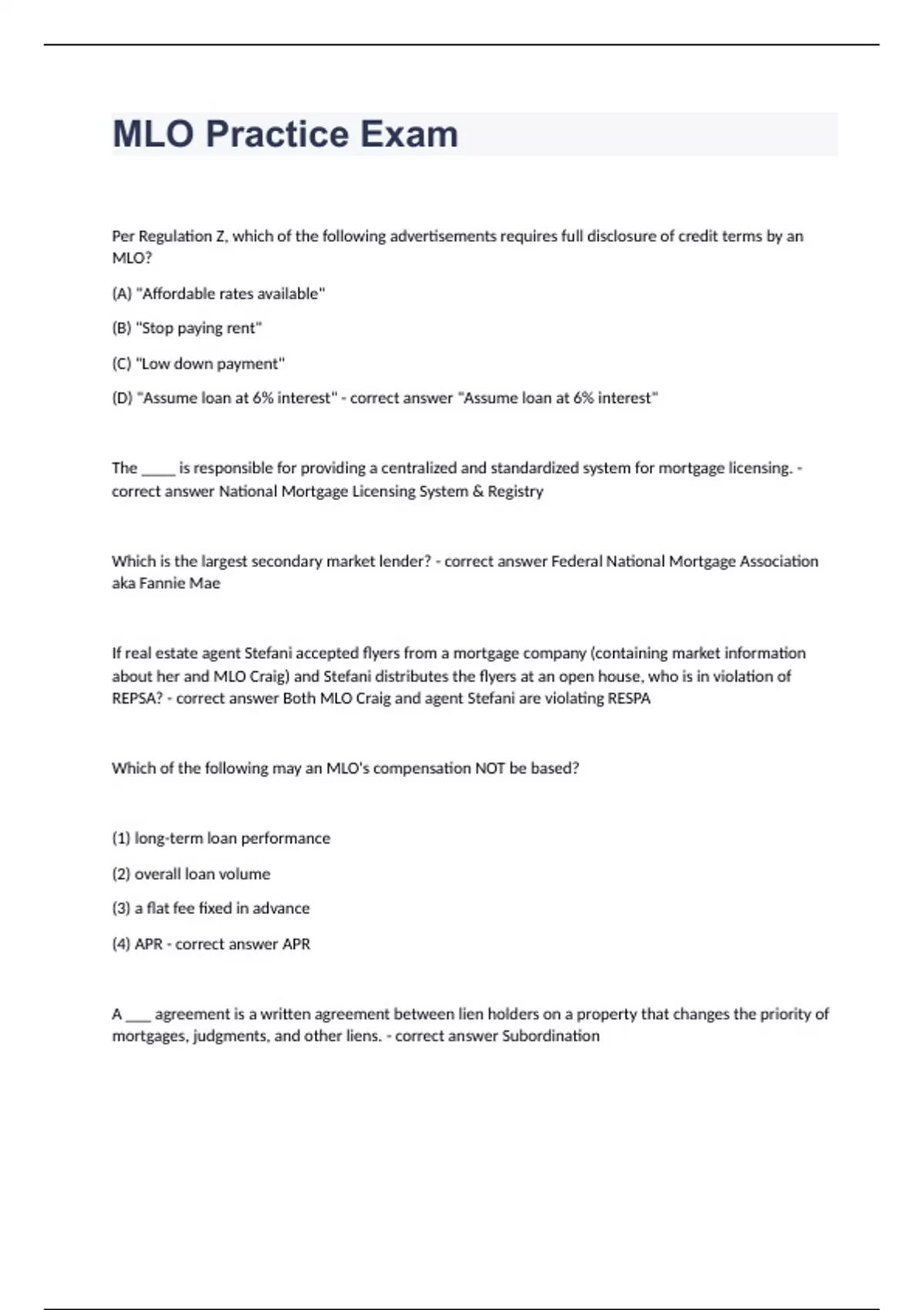 MLO Practice Exam question n answers graded A+ 2023