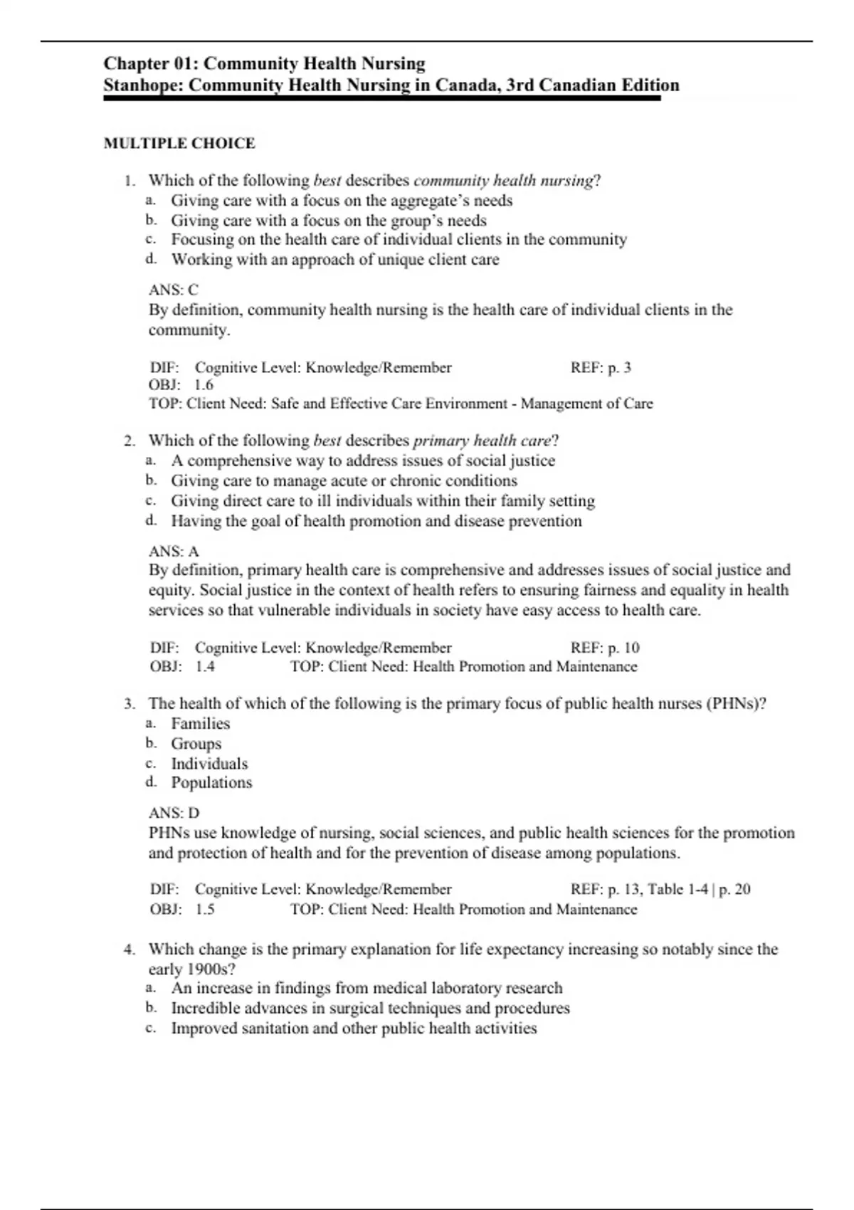 COMMUNITY HEALTH NURSING IN CANADA, 3RD EDITION STANHOPE TEST BANK