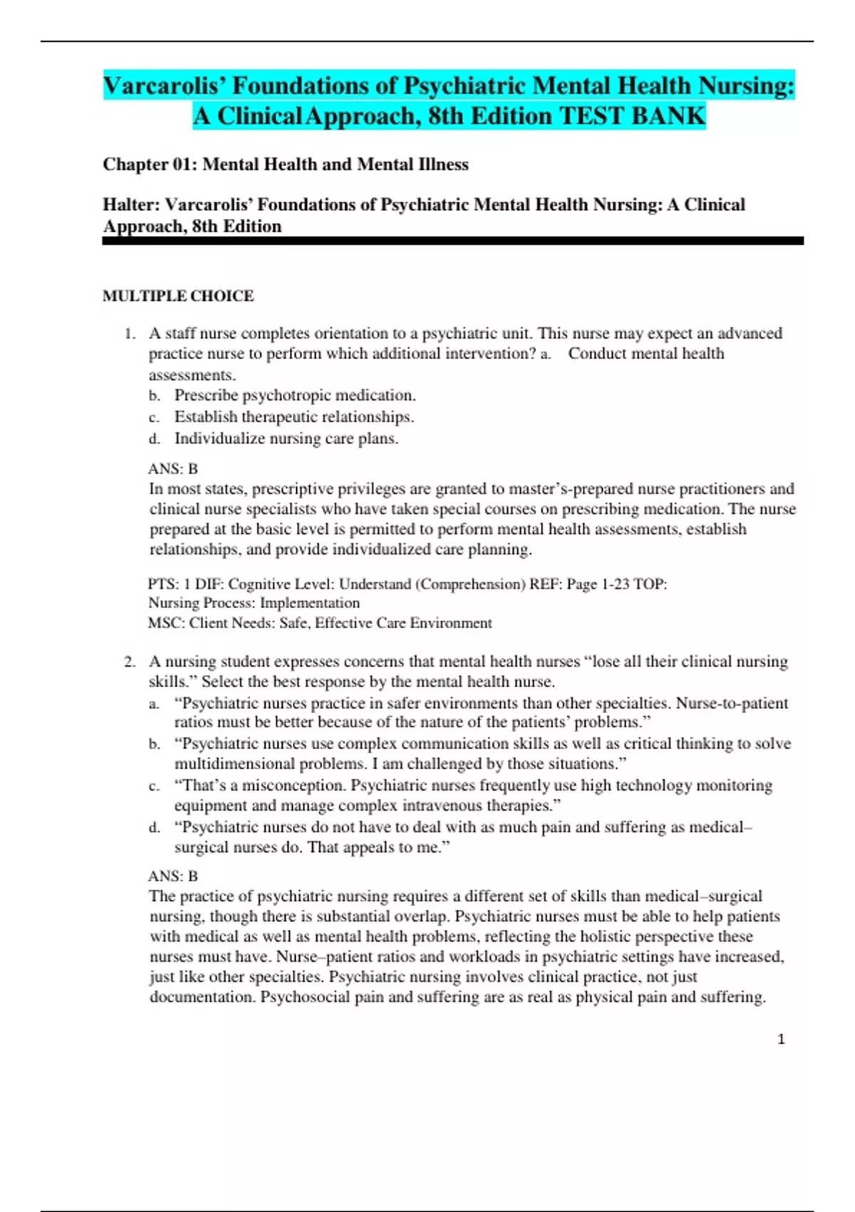VALCAROLIS Foundations of Psychiatric Mental Health Nursing: A Clinical Approach, 8th Edition TEST BANK VALCAROLIS Foundations of Psychiatric Mental Health Nursing: A Clinical Approach, 8th Edition TEST BANK VALCAROLIS Foundations of Psychiatric Mental He