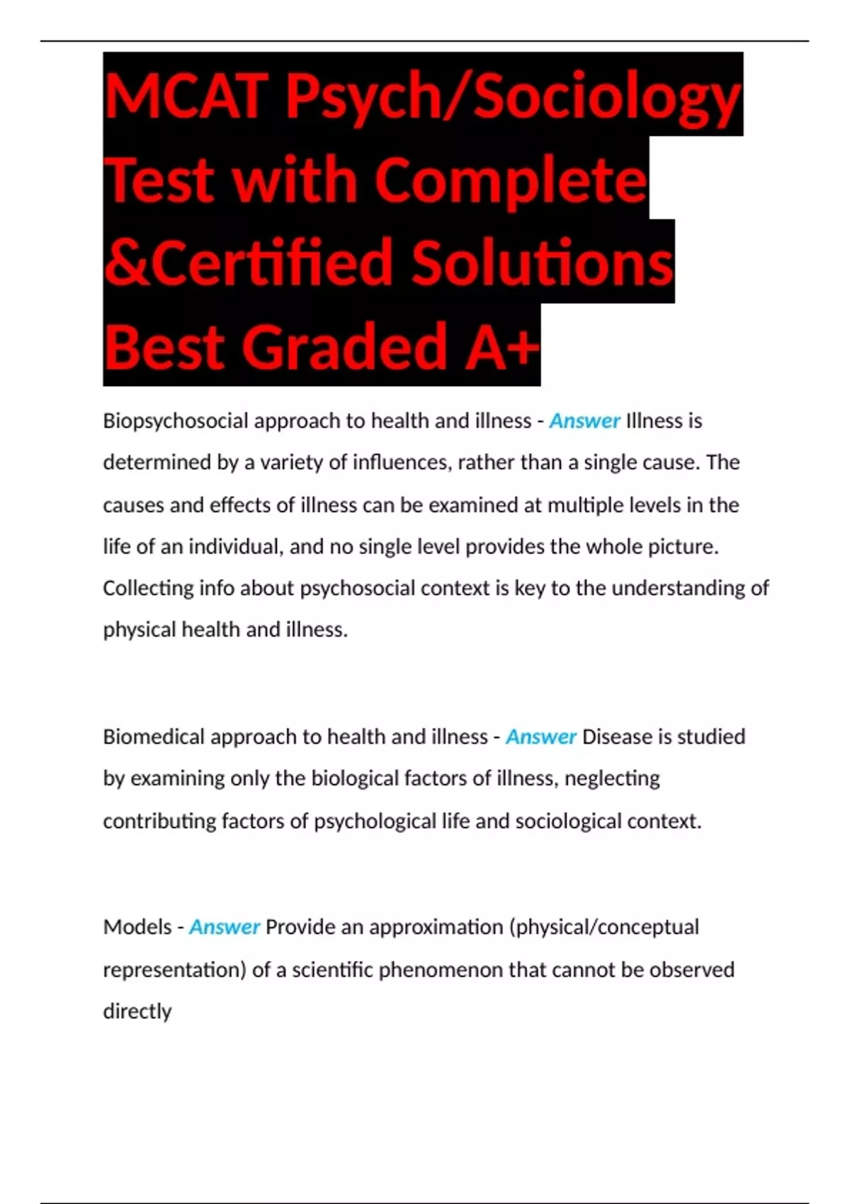 MCAT Psych/Sociology Test with Complete &Certified Solutions Best Graded A+