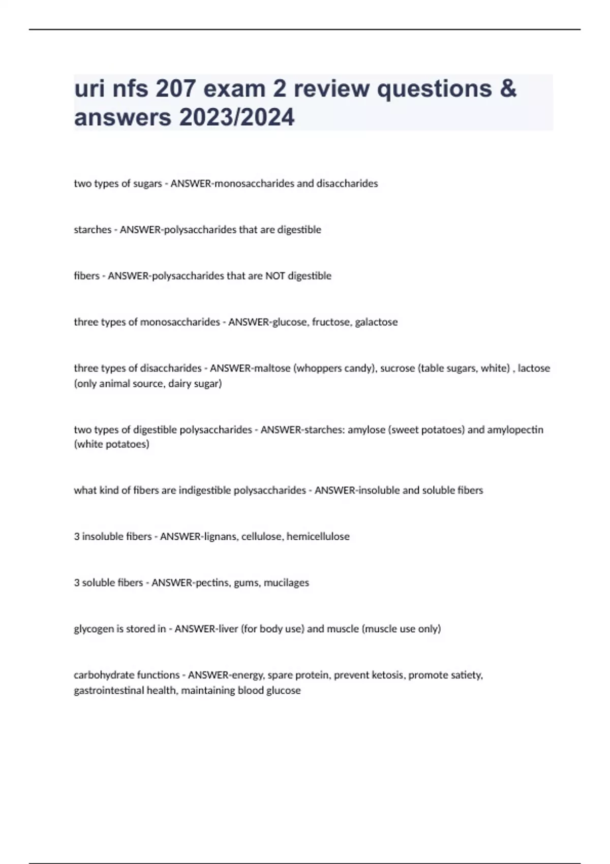 fibers - ANSWER-polysaccharides that are NOT digestible